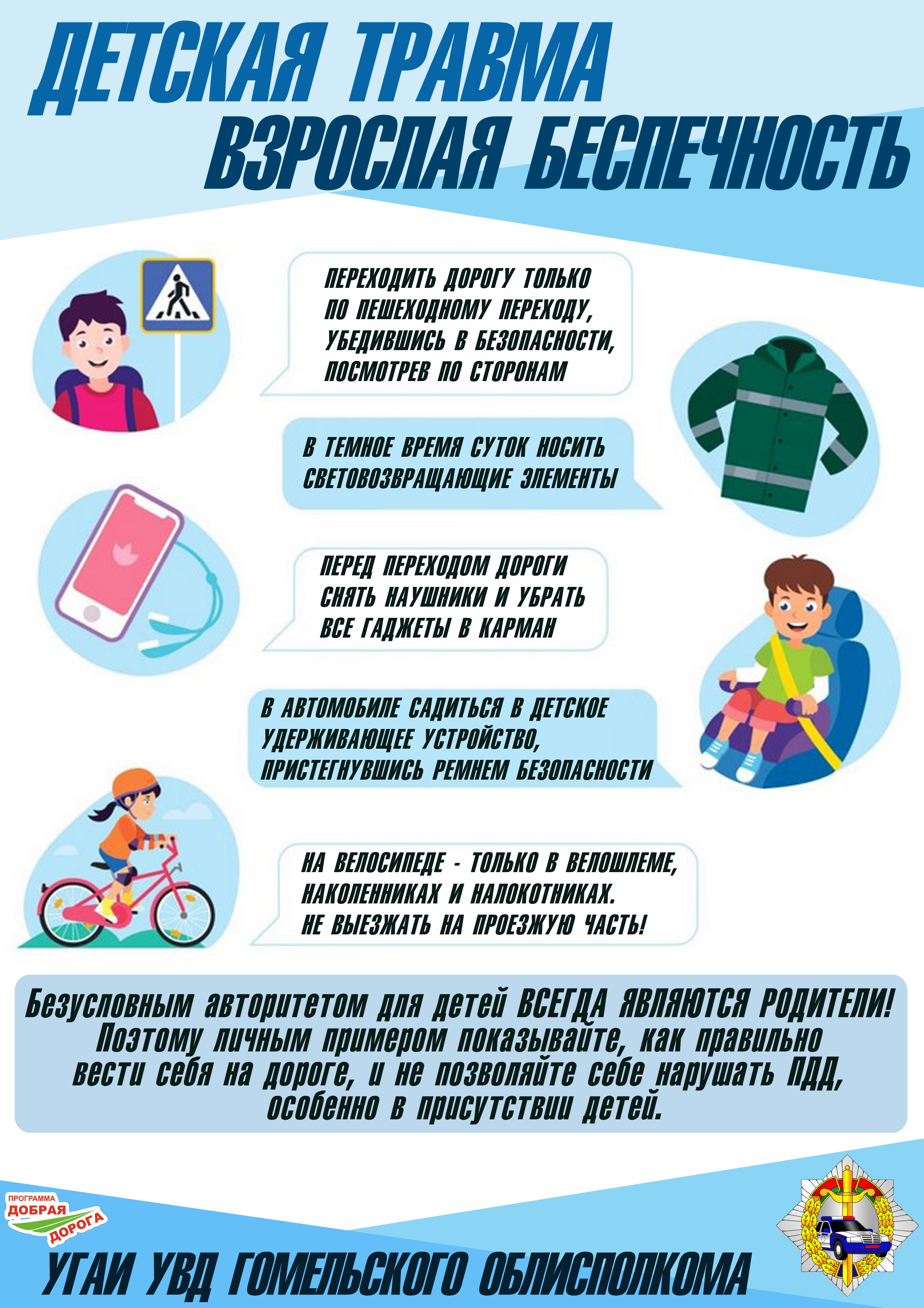 26 мая 2023 года в Республике Беларусь проводится Единый день безопасности дорожного движения под названием «Детская травма – взрослая беспечность!», направленный на профилактику детского дорожно-транспортного травматизма в преддверии летних каникул.