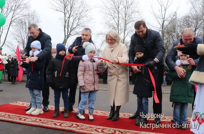 *Спортивно-игровой комплекс и школьный автобус во время празднования «Дожинок» преподнес жителям Октябрьского АСБ «Беларусбанк»