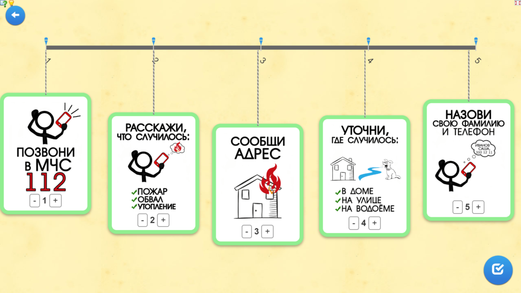 Представляем вашему вниманию новую дидактическую онлайн-игру «Шаги спасения», разработанную Республиканским центром пропаганды МЧС. Она направлена на изучение алгоритмов действий в случае возникновения различных чрезвычайных ситуаций и доступна как с мобильного устройства, так и с персонального компьютера при наличии подключения к сети Интернет.