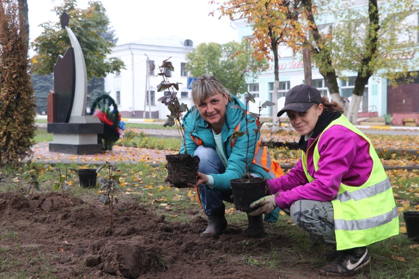 На этой неделе продолжились работы по благоустройству и озеленению городского поселка Октябрьский. Улицы райцентра засаживались новыми молодыми деревьями и кустарниками. Работы по озеленению осуществляли работники предприятий и организации района, в том числе и коммунальники. В частности, в понедельник, они занимались восстановлением элементов озеленения живой изгороди возле памятного знака воинам-интернационалистам. Здесь появились кусты пузыреплодника калинолистого, которые станут отличным дополнением на прилегающей территории.