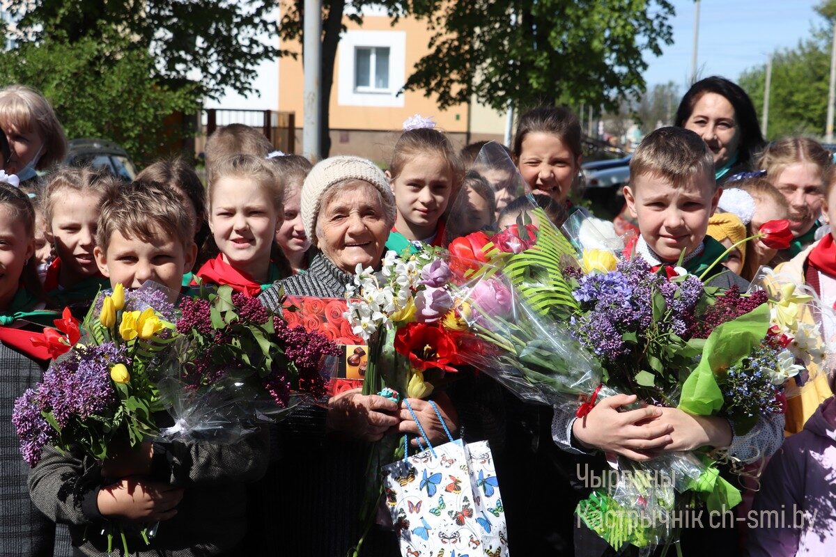 Поздравить с праздником ветерана пионерского движения пришли ребята из СШ №2, которых в этом году приняли в ряды Белорусской республиканской пионерской организации, вместе с педагогами районного центра творчества детей и молодежи и своими классными руководителями.