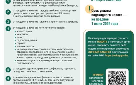 Продолжить чтениеИМНС по Светлогорскому району (отдел по работе с плательщиками по Октябрьскому району) напоминает, что срок предоставления физическими лицами налоговой декларации по подоходному налогу за 2025 год истекает 31 марта 2026 года. Прием налоговых деклараций в марте 2026 года осуществляют: Понедельник — с 8.00 до 19.00, без обеденного перерыва; Четверг — с 9.00 до 20.00, без […]