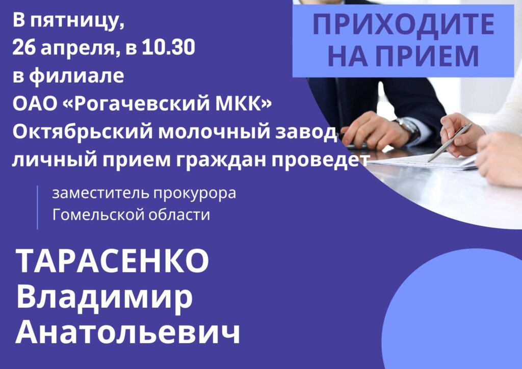 26 апреля прием граждан проведет заместитель прокурора Гомельской области Владимир Тарасенко Важное Прием граждан 25 Апр 2024 2420