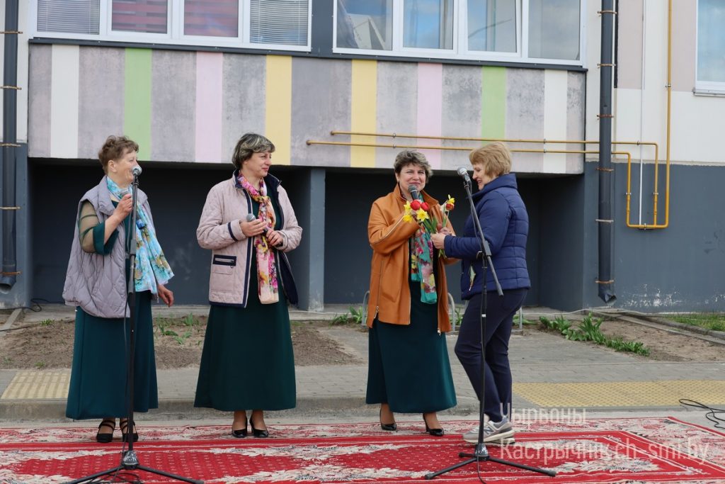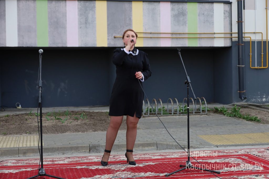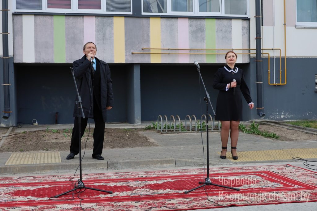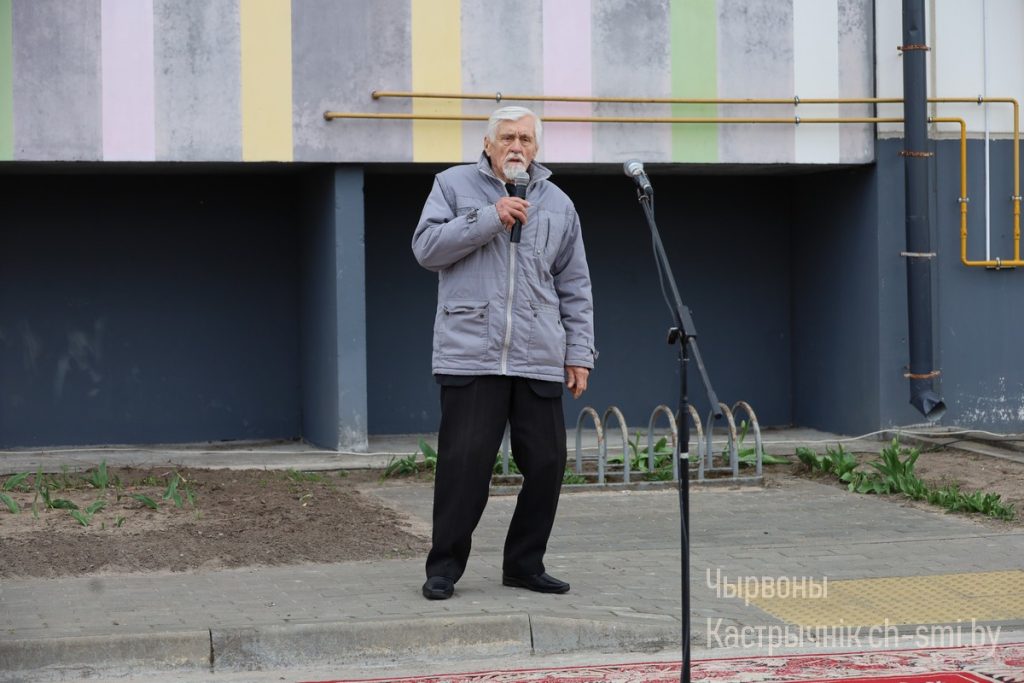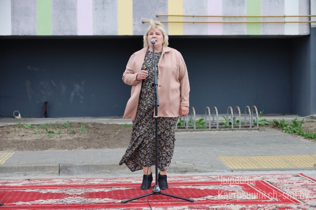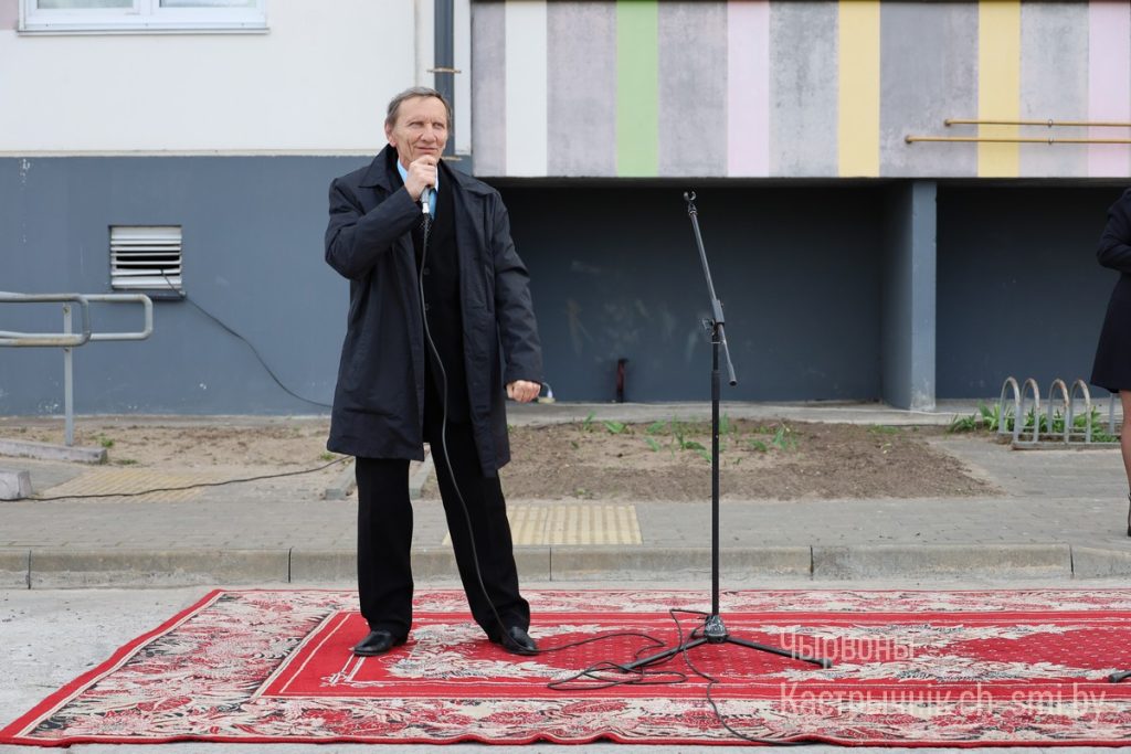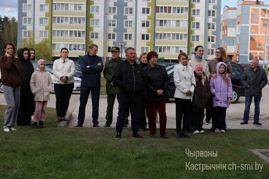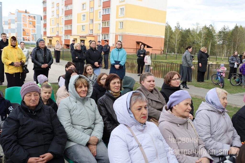 Мероприятие прошло на площадке возле дома в поселке Наровлянский – такое название в народе закрепилось за рядом улиц, которые появились на окраине нашего горпоселка после аварии на АЭС. Чистый от радиации Октябрьский район выбрали в те годы для жизни жители Наровлянского, Хойникского, Брагинского, Ветковского, Ельского и других районов, вынужденных покинуть родные места.