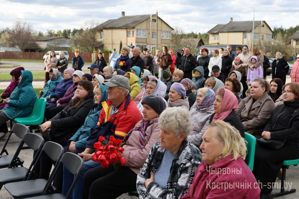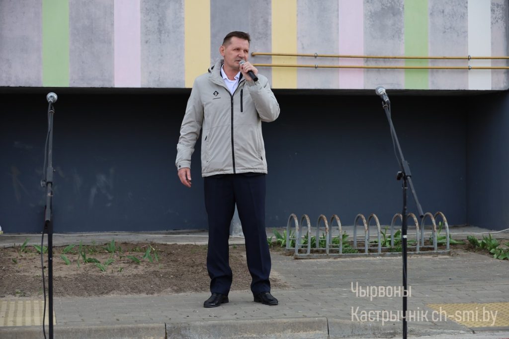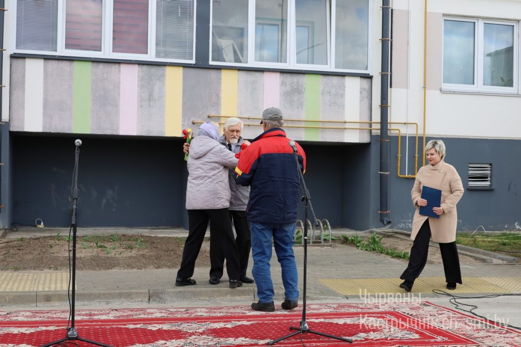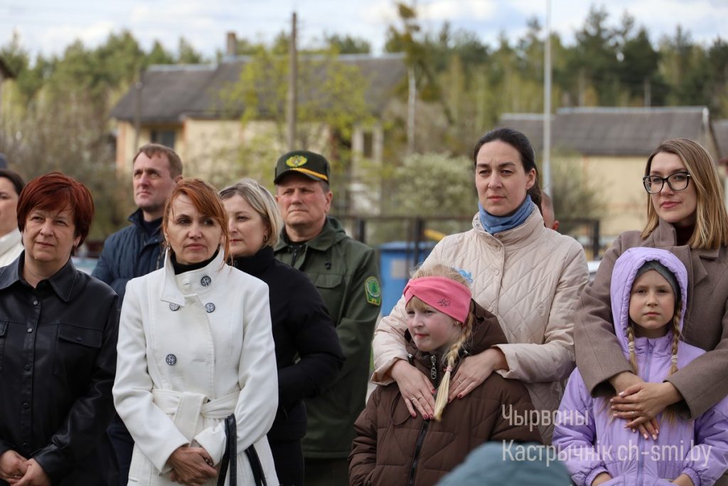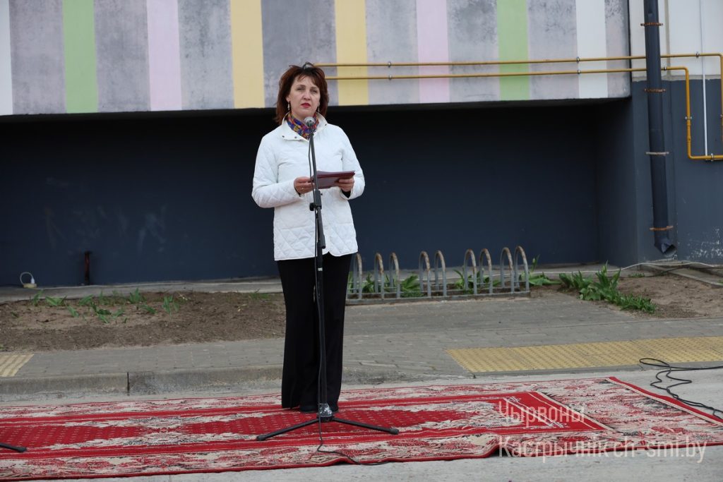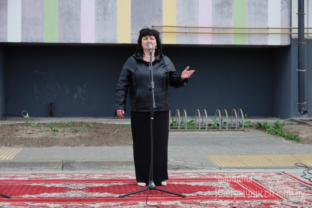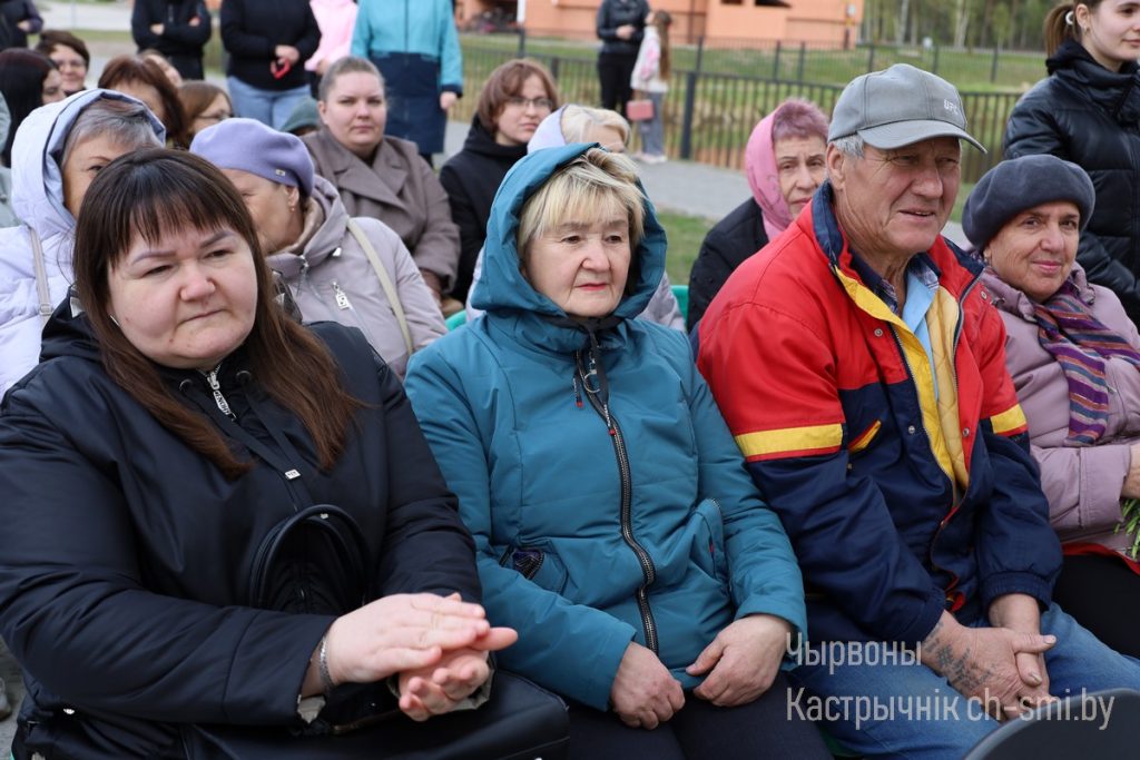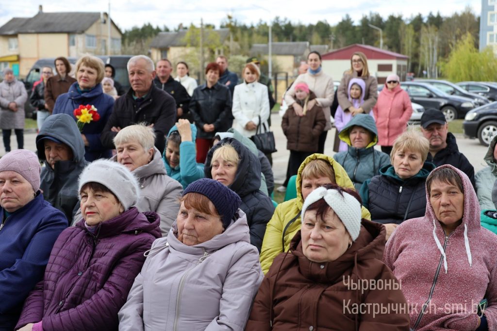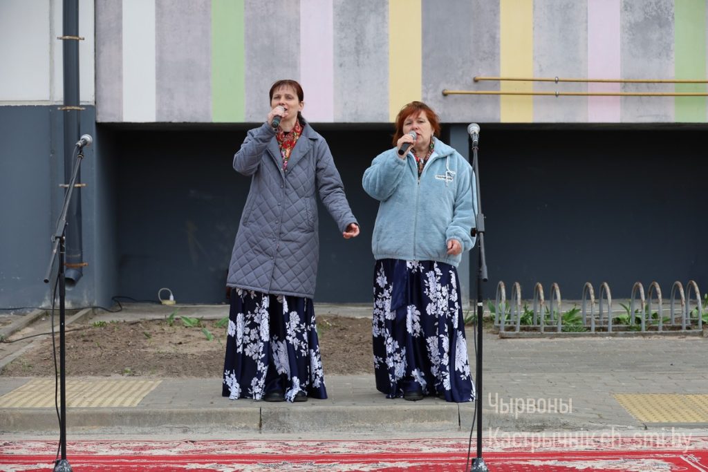 Мероприятие прошло на площадке возле дома в поселке Наровлянский – такое название в народе закрепилось за рядом улиц, которые появились на окраине нашего горпоселка после аварии на АЭС. Чистый от радиации Октябрьский район выбрали в те годы для жизни жители Наровлянского, Хойникского, Брагинского, Ветковского, Ельского и других районов, вынужденных покинуть родные места.