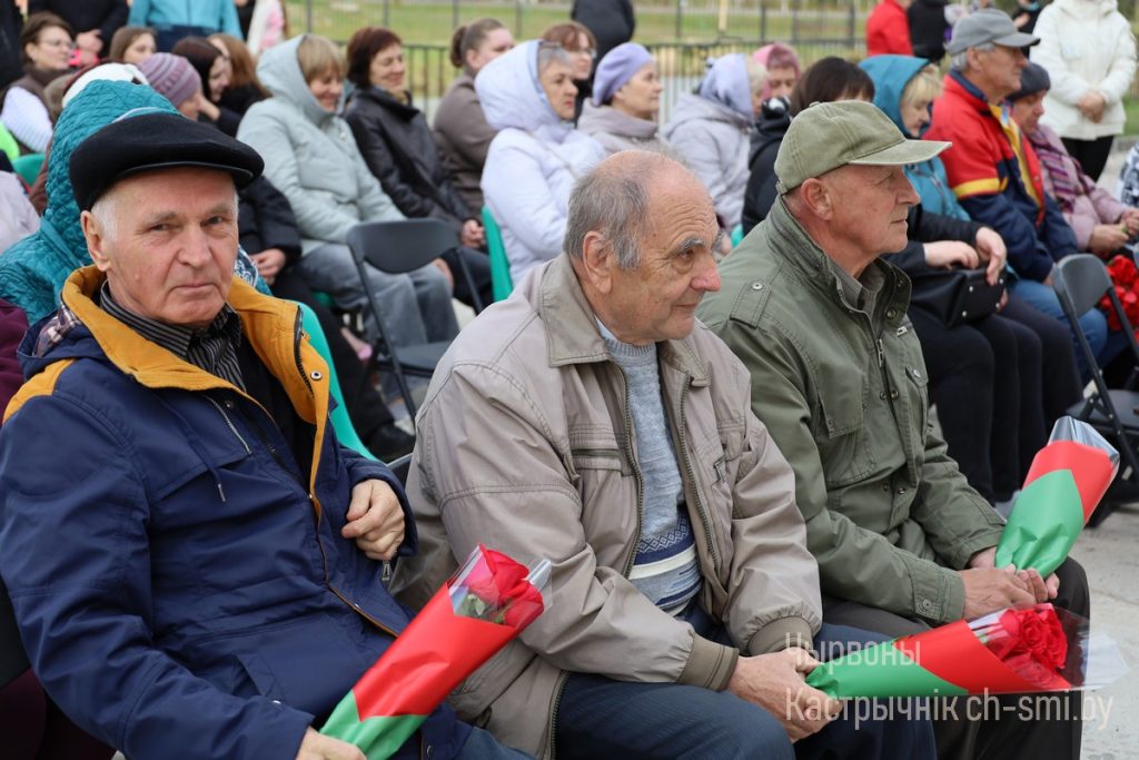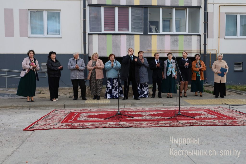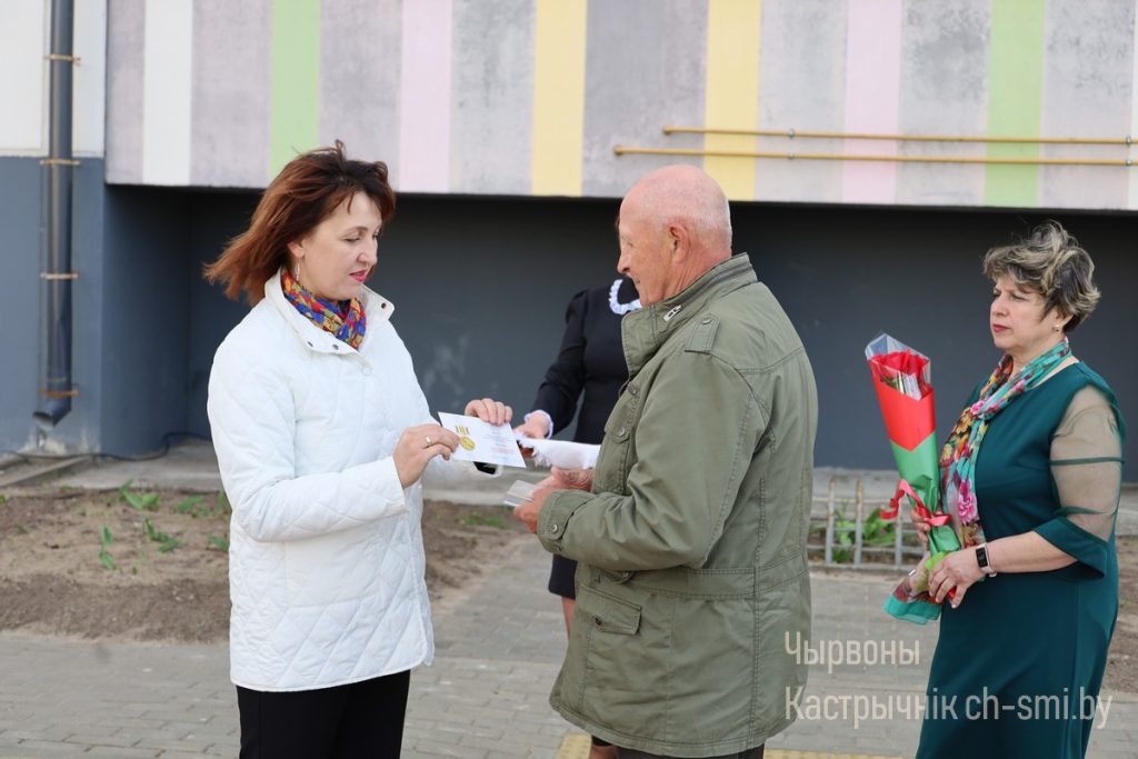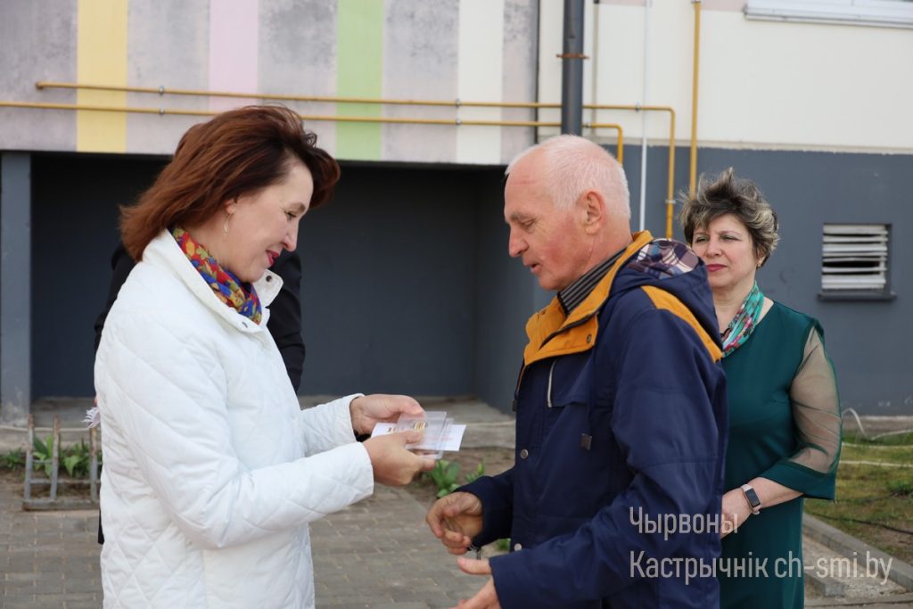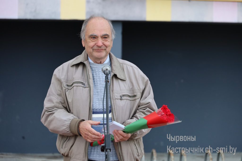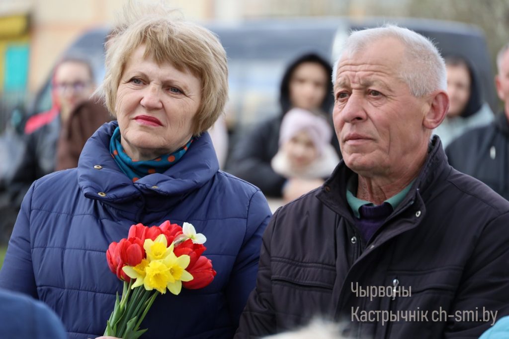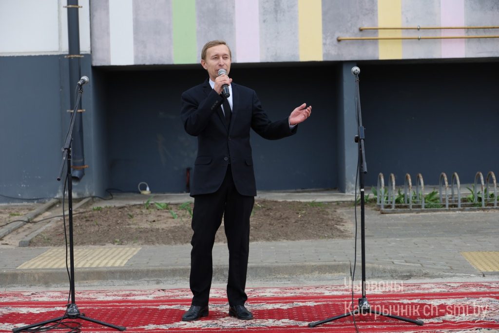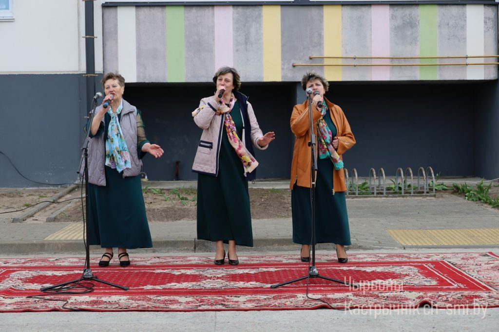 Мероприятие прошло на площадке возле дома в поселке Наровлянский – такое название в народе закрепилось за рядом улиц, которые появились на окраине нашего горпоселка после аварии на АЭС. Чистый от радиации Октябрьский район выбрали в те годы для жизни жители Наровлянского, Хойникского, Брагинского, Ветковского, Ельского и других районов, вынужденных покинуть родные места.
