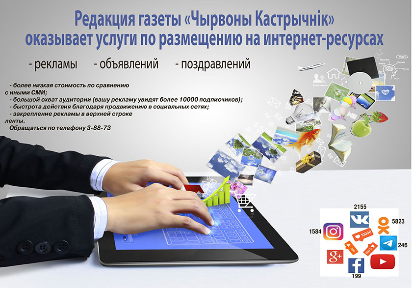 Редакция газеты «Чырвоны Кастрычнiк» оказывает услуги по размещению рекламы на своих интернет-ресурсах Реклама, объявления 07 Июн 2022 9850