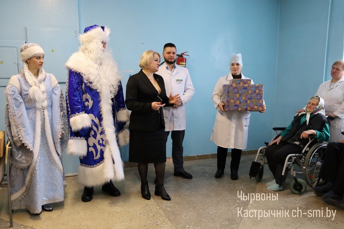 Акция «От всей души» в Октябрьском продолжается. Сегодня поздравления и подарки принимали пациенты Заболотской больницы сестринского ухода. Их навестила председатель Октябрьского районного исполнительного комитета Ирина Намоченко.
