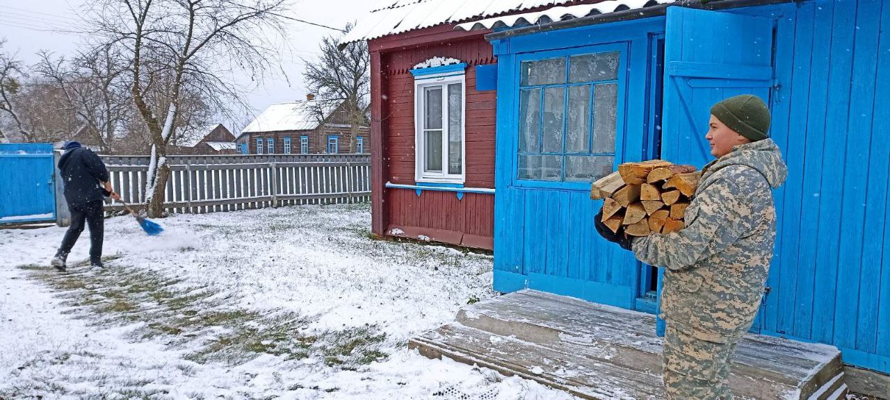 С заботой о пожилых людях. Активисты БРСМ Рассветовской средней школы Октябрьского района приняли участие в акции «ЭСТАФЕТА ТЕПЛА». Узнице Озаричского концлагеря Папруга Т. Ф. ребята принесли дров, очистили двор от снега и с удовольствием выполнили другие поручения.