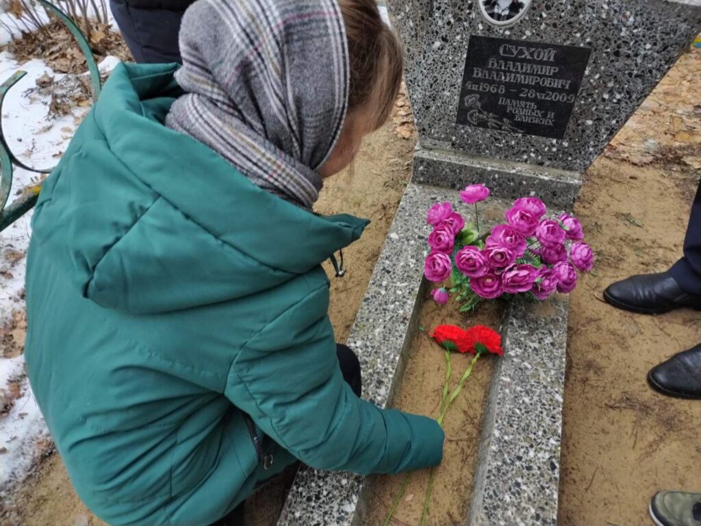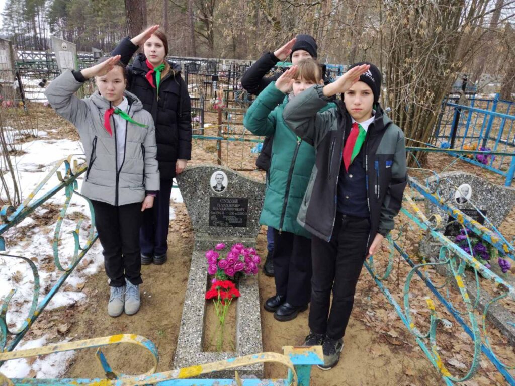 В рамках месячника гражданско-патриотического воспитания «Подвигу, доблести- память и честь!» и республиканской декады гражданско-патриотических дел «Афганістан у лёсах нашых землякоў» активисты ОО «БРПО» пионерской дружины имени Д. В. Сенько Волосовичской средней школы Октябрьского района совместно с руководителем по военно-патриотическому воспитанию Яльчиком В. Е. посетили могилу воина-интернационалиста Сухого В.В., навели там порядок и почтили память минутой молчания.