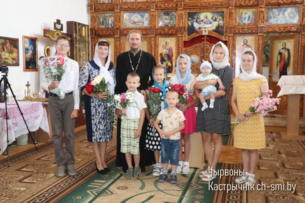 К поздравлениям присоединились главный экономист ОАО «Краснослободское» Ирина Рябченок и председатель профсоюзного комитета местной школы Лариса Удовина. И, конечно же, отец Валерий и матушка Алла принимали поздравления от прихожан храма Нерукотворного образа Господня.