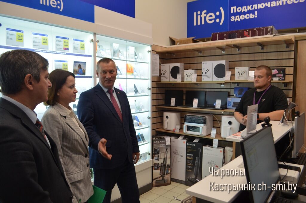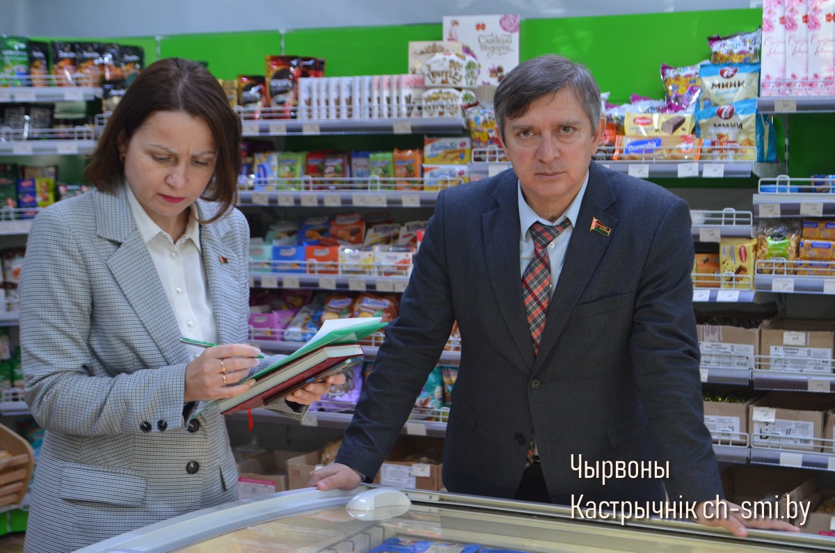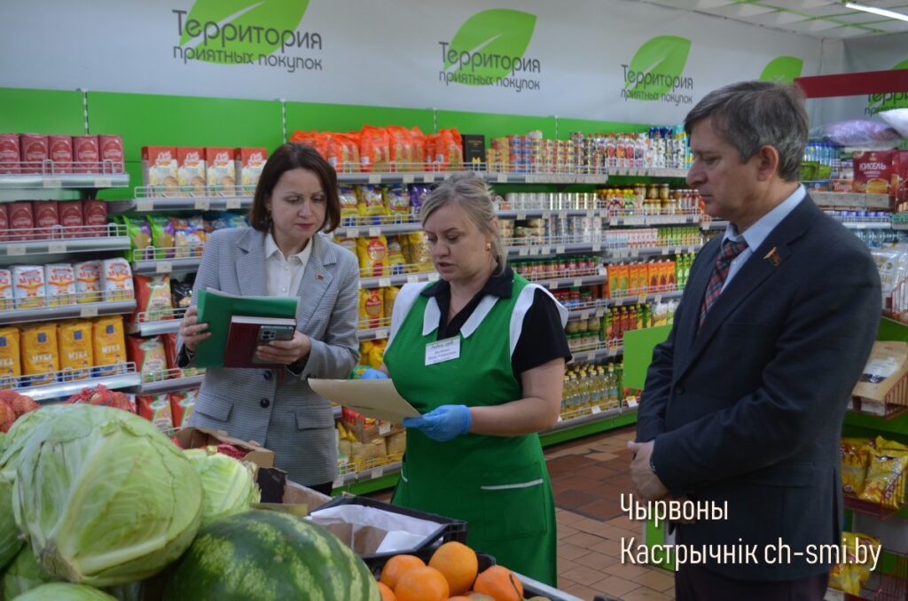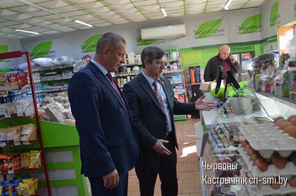 Николай Валентинович и сопровождающие его в поездке председатель Октябрьского районного Совета депутатов Александр Луцкович и начальник отдела экономики райисполкома Лариса Забродская посетили супермаркет «Еврооопт» и находящиеся при нем частную аптеку «Добрыя лекi», а также салон по продаже гаджетов и бытовой техники «На связи», затем – магазин №7 «Родны Кут» Октябрьского филиала Гомельского облпотребобщества. В ходе данных совместных визитов был отмечен богатый выбор товаров продовольственной (в том числе сезонных овощей и фруктов) и промышленной группы, лекарственных средств. При этом цены на социально значимые товары, медицинские препараты остались на прежнем уровне со времени проведения подобного мониторинга месяц назад.