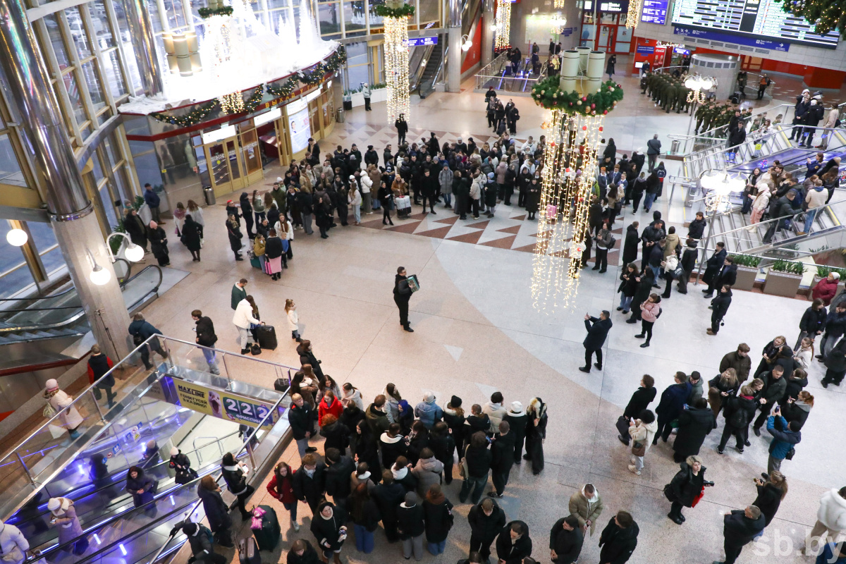 «Батька у нас крутой!» — десятки людей спели под баян знаменитую песню на минском железнодорожном вокзале