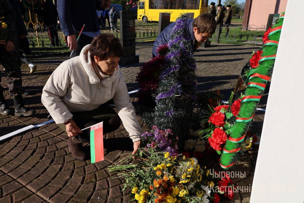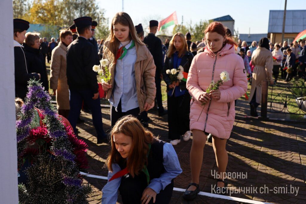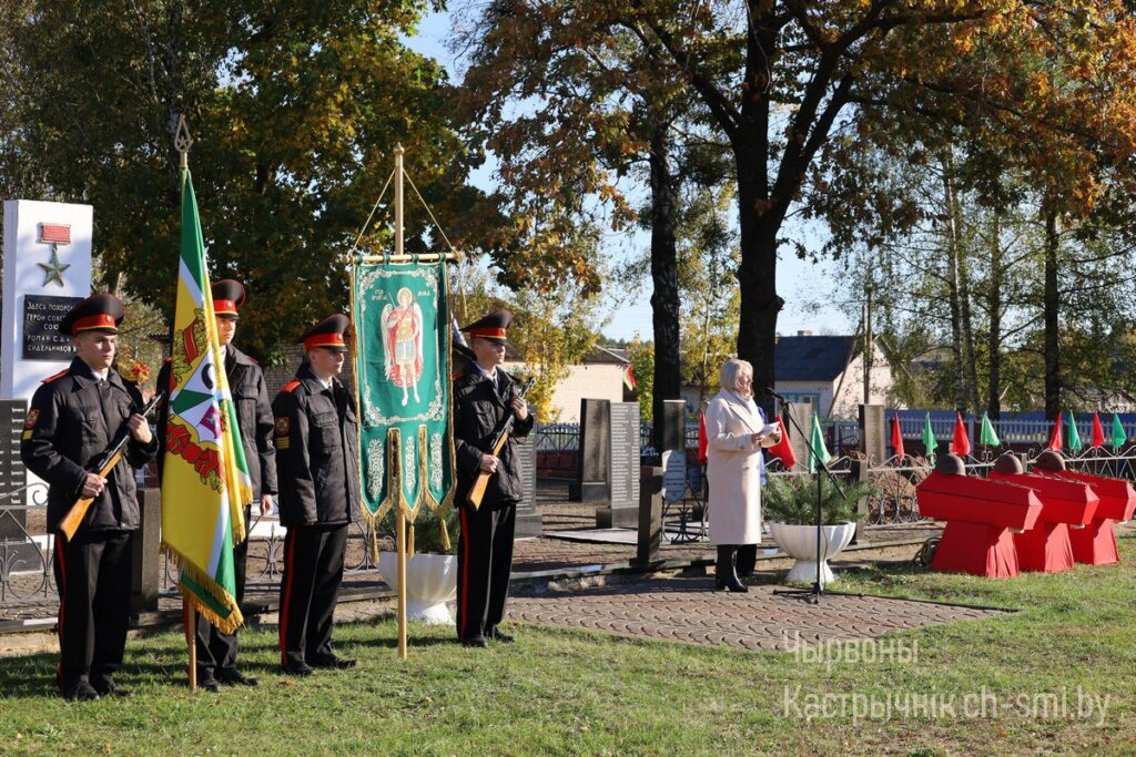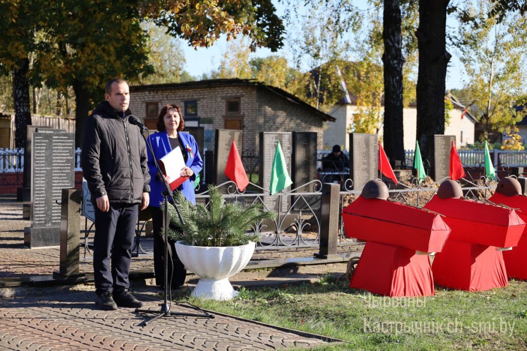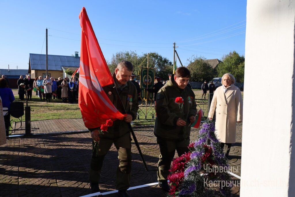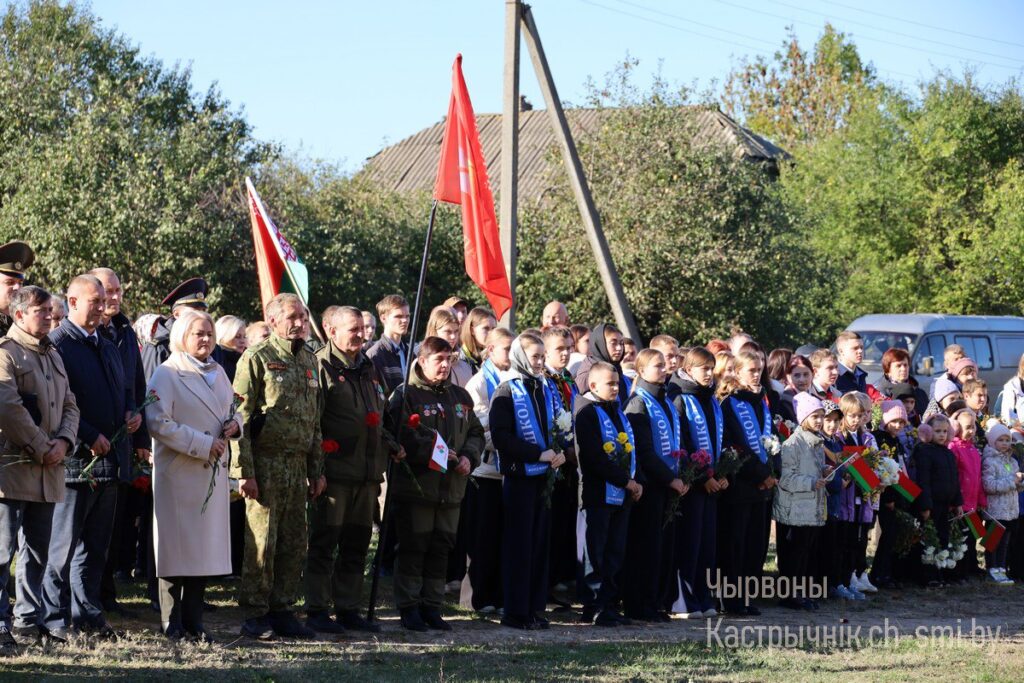«В период с августа по сентябрь 2024 года вблизи деревень Гороховищи и Пружинищи военнослужащими 52 специализированного поискового батальона были проведены поисковые работы. Обнаружены останки 9 защитников Отечества. Двое из них известные: Бирюк Иван Иванович и Каражанов Аман. К сожалению, 7 солдат остаются неизвестными. И сегодня они будут захоронены на земле, которую они защищали и не пожалели свои жизни ради мира для нынешних поколений белорусов»,- подчеркнула председатель Октябрьского райисполкома Ирина Намоченко, обращаясь к участникам митинга.