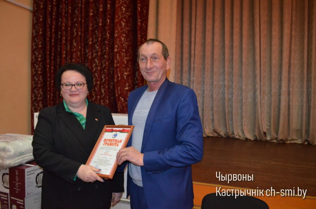 Завершился итоговый профсоюзный форум на поздравительной ноте. В частности, Почетными грамотами Гомельского обкома профсоюза работников АПК были награждены руководитель ОАО «Дербин» Сергей Якуш, председатель первичной профсоюзной организации хозяйства Валентина Цурко (в этом году исполняется 20 лет, как она бессменно является профсоюзным лидером данного хозяйства) и животновод Галина Жданович. Кроме того, ценными подарками были отмечены работники сельхозорганизации опять же Галина Жданович, Ирина Пинчук, Марина Назаренко и Наталья Бровун, уходящие нынче на заслуженный отдых. Подарков были удостоены и другие труженики ОАО «Дербин», добросовестно отработавшие на различных участках на протяжении ряда лет.