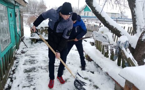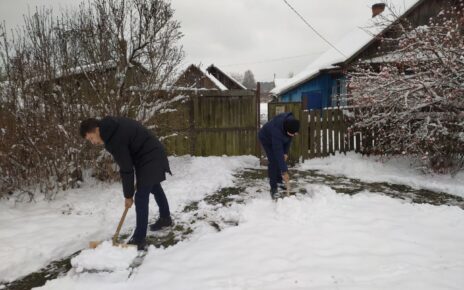 Волонтерский отряд «По зову сердца» Волосовичской средней школы Октябрьского района продолжает участие в акции «Пора добрых дел». Ребята помогают расчистить от снега дорожки к дому, приносят дрова одинокопроживающим местным жителям.