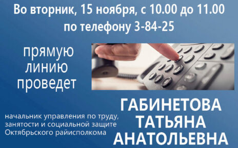 График проведения «прямой телефонной линии» в рамках мероприятий, приуроченных ко Дню инвалидов: Заместитель председателя комитета Федорович Андрей Николаевич (вопросы социальной поддержки инвалидов) — 02.12.2022 г. с 09.00 до 10.00. Телефон: 8-0232-50-93-64. Начальник управления пенсионного обеспечения Мустафина Наталья Ивановна (вопросы реализации государственной политики по организации пенсионного обеспечения населения) — 02.12.2022 г. с 10.00 до 11.00. Телефон: 8-0232-50-93-21. Начальник управления занятости […]