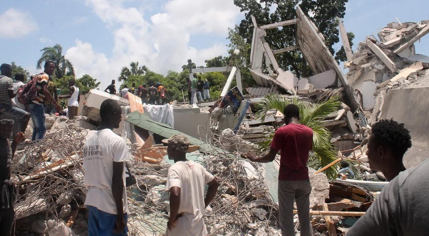 По информации управления гражданской защиты республики, около 5,7 тыс. человек получили ранения, 3,2 тыс. из них госпитализированы. Поиски людей под завалами продолжаются. В субботу утром в районе Гаити произошло землетрясение магнитудой 7,2. Эпицентр находился в 40 км от коммуны Ле-Ке с населением около 125 тыс. человек, очаг залегал на глубине 10 км. Сильнее всего пострадали департаменты Юг, Гранд-Анс и Нипп. В них зафиксированы разрушения медицинских и религиозных учреждений. Правительство на месяц ввело режим чрезвычайного положения.