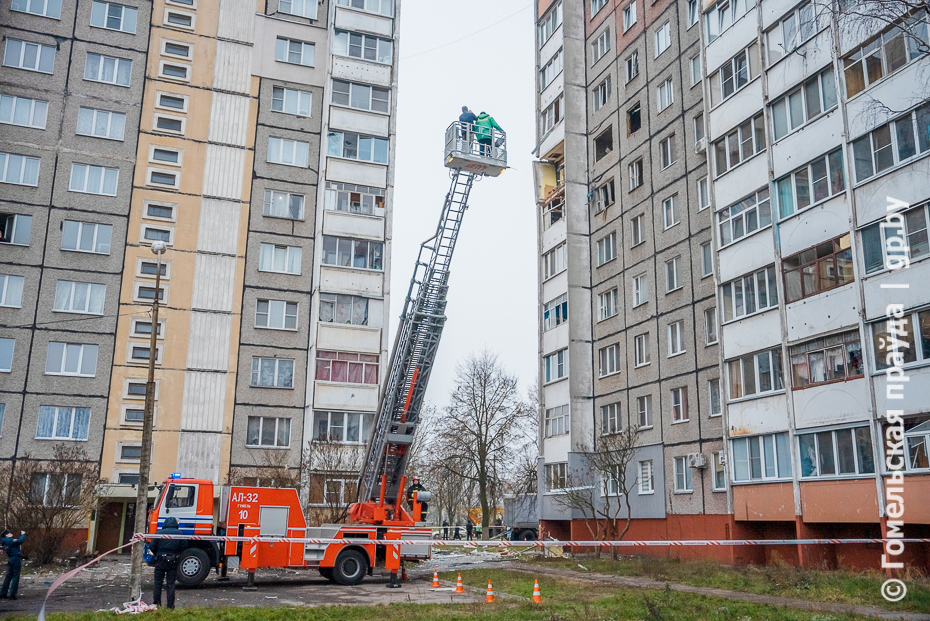 По словам начальника областного управления МЧС Сергея Дичковского, в 12.45 в центр оперативного управления Гомельского горотдела по чрезвычайным ситуациям поступило сообщение о взрыве бытового газа. Прибывшие на место вызова подразделения установили, что в квартире шестого этажа произошло обрушение верхних потолочных плит седьмого и восьмого этажей. Сразу же началась эвакуация жильцов. С верхних этажей в течение пяти минут было эвакуировано девять человек.