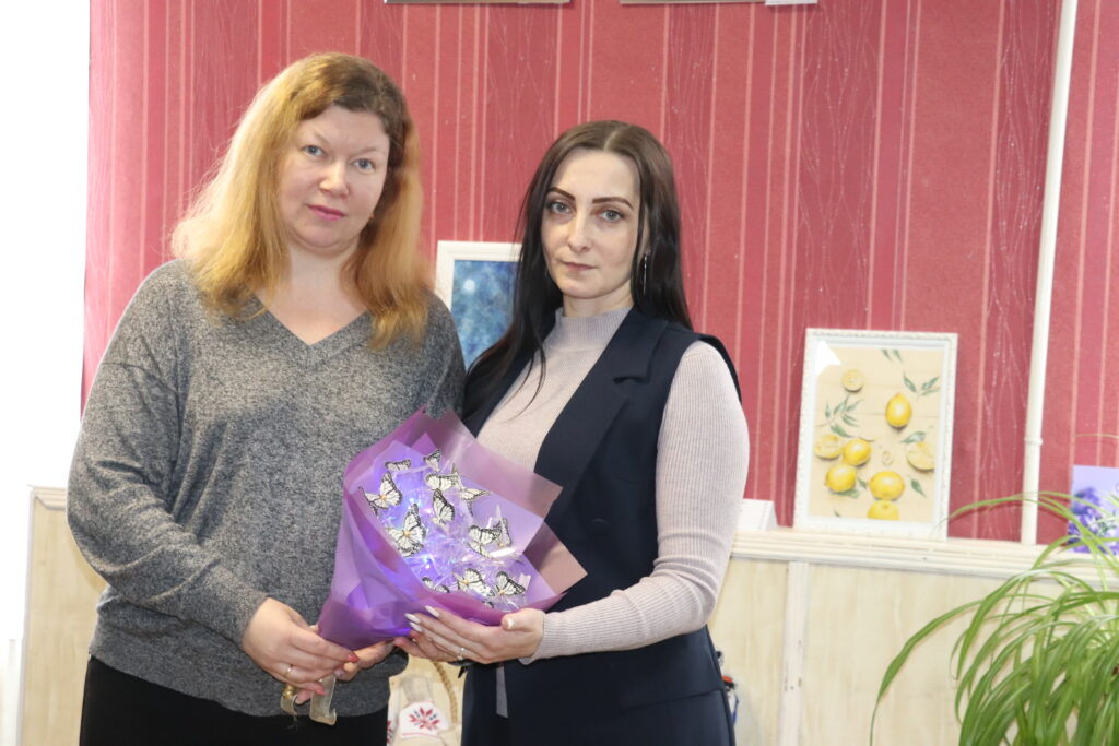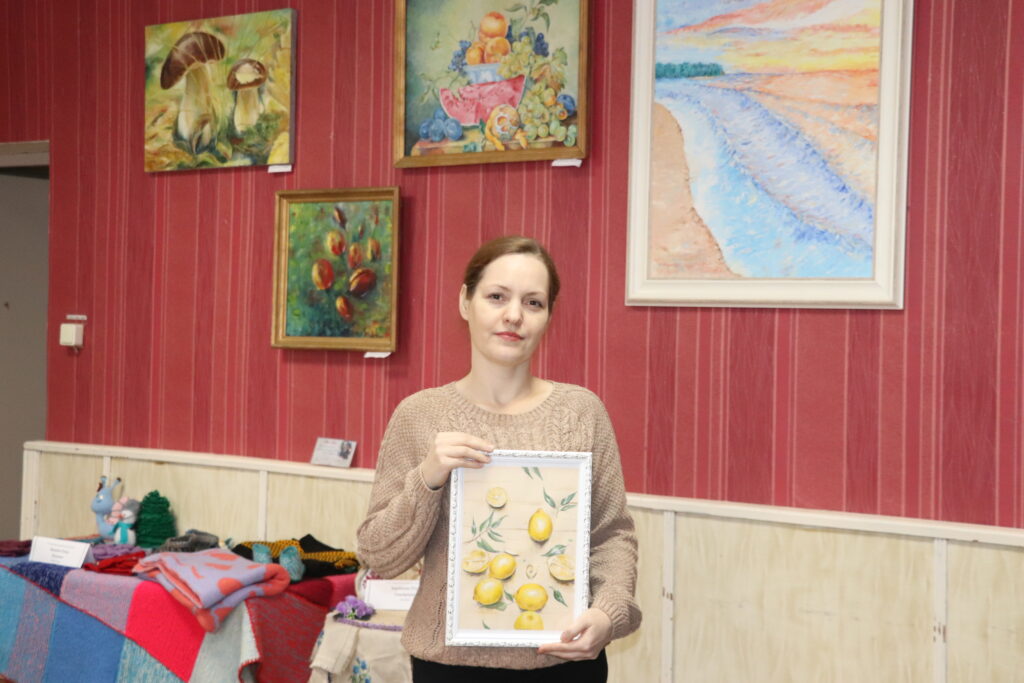 Отдельной экспозицией на выставке представлены авторские картины, написанные Тамарой Кобылянец, в технике вышивки крестом и бисером – картины Раисы Войтеховской и Татьяны Вежновец. Россыпью красочных цветов отмечены работы Дианы Лац, которая также делает заколки и резинки для волос в технике канзаши, повязки на голову.