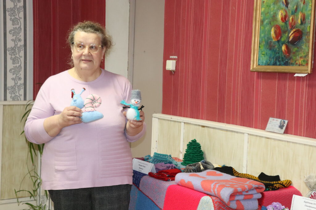Уже давно самым популярным способом рукоделия является вязание на спицах. Мягкие игрушки, теплые пледы, детские носочки и тапочки, связанные Еленой Михеевой, способны согреть в любые холода. А цветочные композиции, декоративные панно и ваза, выполненная в технике «Джутовая филигрань», представлены Юлией Бардоновой. Каждое изделие неповторимо, оно хранит частицу души и тепло рук мастериц.
