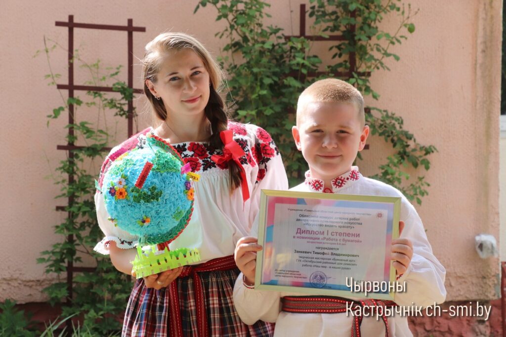 Возрождая культуру предков, Анастасия Бубович вкладывает всю душу в ювелирную, кропотливую работу. Символические обереги, панно, шкатулки, игрушки и картины белорусской природы на бумаге появляются благодаря лишь ножницам или резцам. Но можно и без ножниц путем сложения бумажного листа, делится Анастасия секретами мастерства. Кстати, в своем учреждении, где традиционные народные ремесла развивают активно, Настя как универсальный мастер. Овладела не только восточным искусством, но и белорусскими ремеслами – соломплетением, вышивкой, вяжет крючком и вышивает бисером. А недавно решилась взяться за ткачество. Поэтому с легкостью может перенести узор из любого рукоделия на бумагу. Строит работу по своему пониманию и восприятию. Анастасия не просто берет бумагу и начинает вырезать. Она обдумывает сюжет, выстраивает композицию. Своей задачей видит популяризацию отличительного белорусского ремесла, чтобы ничего не потерялось во времени и передавалось из поколения в поколение. Учит народному ремеслу юных октябричан. Дважды в неделю занимается с ребятами резными узорами, которые ложатся в основу самых смелых решений. Некоторым детям уже под силу и сложный декор. В этно-стиле создают сувениры, панно, картины с оригинальными сюжетами. За каждой – часы тонкой работы, которая всегда отмечается высокими оценками мастеров-профессионалов на областном и республиканском уровне. Нынешним летом воспитанник Анастасии Михайловны Тимофей Занкевич был отмечен дипломом I степени в областном конкурсе детских работ декоративно-прикладного искусства «Искусство видеть красоту». Награду он получил за авторскую работу «Наш мир в наших руках». И сама, как мастер, Анастасия Бубович в этом году завоевала диплом I степени в Международном творческом конкурсе «Живая вода» интернет-сайта «Страна Мастеров» в номинации «Водное царство». То, что не только девчонкам, но и мальчишкам этот вид искусства интересен, очень воодушевляет, признается Анастасия Бубович. Ажурную пластику они изучают основательно и глубоко. Таким образом, вытинанка продолжает жить.