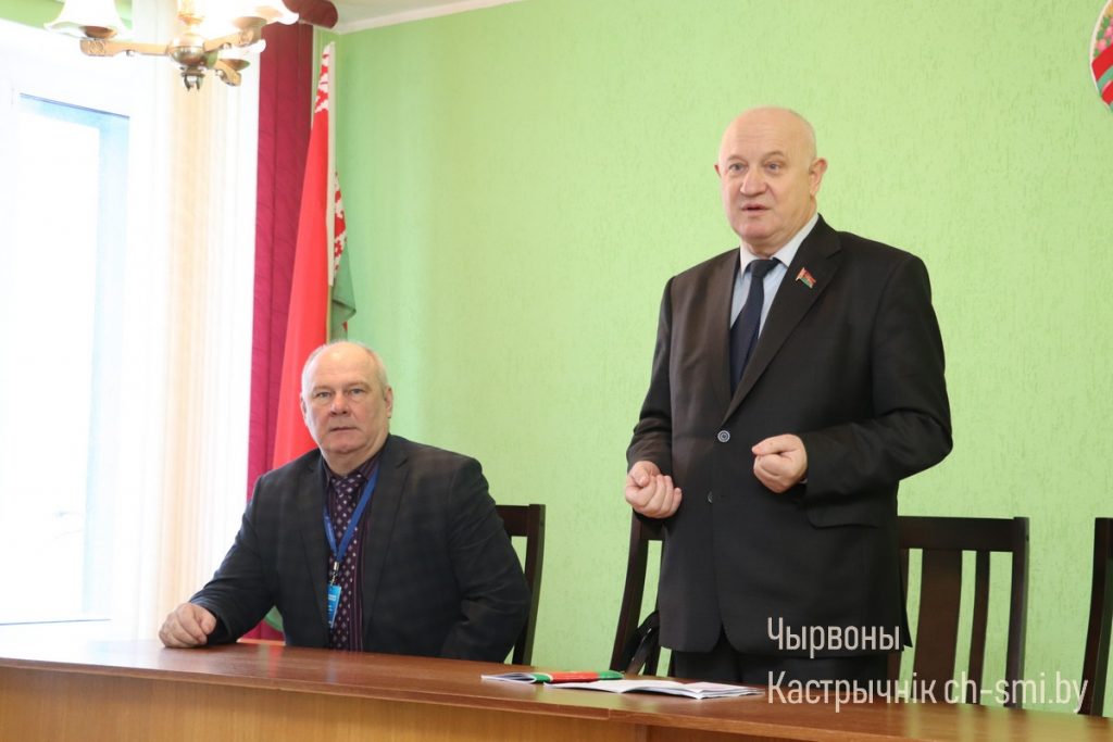 Евгений Буниславович с рабочей поездкой посетил Октябрьский район. Совместно с председателем Октябрьского районного Совета депутатов Олегом Таргонским они посетили Октябрьский районный центр гигиены и эпидемиологии и среднюю школу №2. Во время встреч обсуждался проект изменений и дополнений Конституции Республики Беларусь