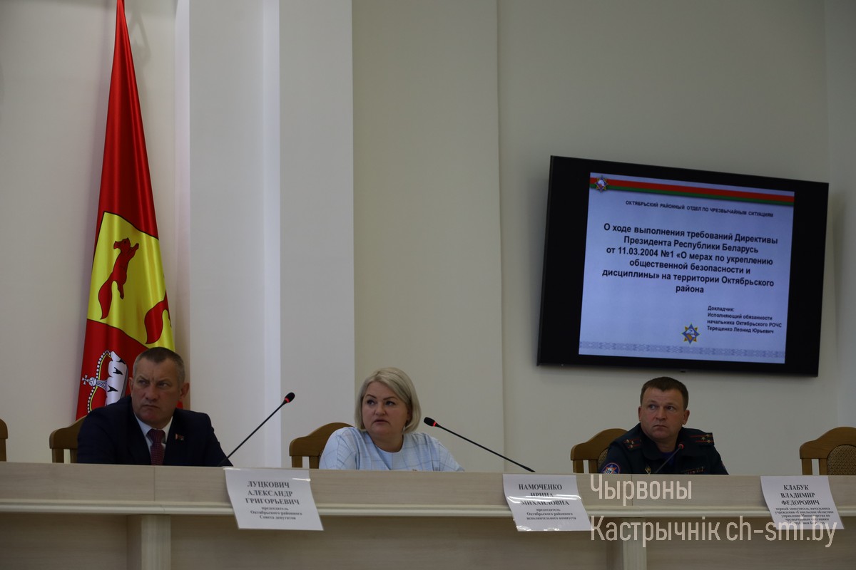 На заседании присутствовали председатель Октябрьского районного Совета депутатов Александр Луцкович, первый заместитель начальника Гомельского областного управления МЧС Республики Беларусь Владимир Клабук.