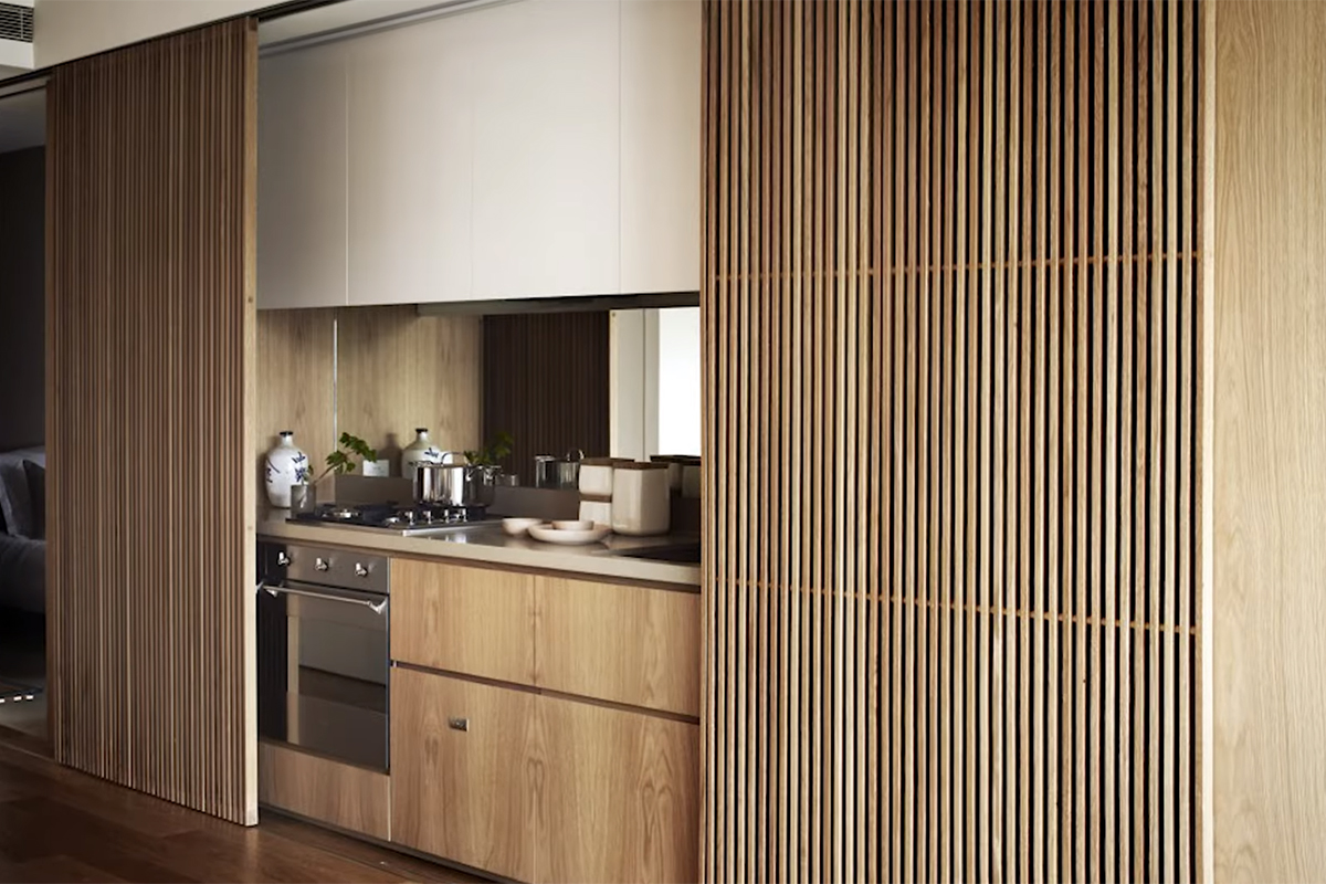 — Те, которые целиком закрываются фасадами. И они выглядят как монолитная стена, — отметила дизайнер. — Двери в такой конструкции могут выезжать сбоку и задвигаться, сверху полностью закрываться фасадами. Однако всё, что объединяет эти решения, это возможность целиком закрыть кухню. Такая конструкция великолепно подходит для студий, для кухонь-гостиных, особенно для премиум-интерьеров. Потому что такие механизмы по-прежнему стоят дорого. И это решение скорее для холостяков или тех, кто немного готовит. А если у вас семья и вы много времени проводите на кухне, то постоянно открывать и закрывать эти двери — не самое удобное решение.