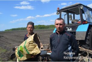 С тем, что техника порой вязнет в грязи даже на легких минеральных почвах, приходится как раз иметь дело на данном этапе сеятелям сельхозпредприятия. Сергей Терентьев, занятый на яровом и озимом севе в родном хозяйстве на протяжении уже более 20 лет, знающий, наверное, каждую ямку и каждый взгорок, и то вынужден действовать крайне осторожно, чтобы лишний раз не загрузнуть. Остановки, действительно, приходится ему делать все чаще для очистки механизмов анкерной сеялки ТСМ-8000 от налипающей влажной земли. Тем не менее, Сергей Валерьевич успевает за день качественно засевать до 30 гектаров «королевы полей», как это ему удалось 2 мая на довольно проблематичном участке в урочище Заболотье между Волосовичами и Дербином (на снимке). И, между прочим, не без поддержки сына Дениса, также работника хозяйства, который подвозит семена кукурузы и помогает их вручную загружать в емкости сеялки.