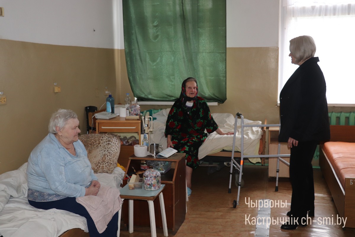 Добрые дела в канун Светлой Пасхи. Руководство района с подарками и поздравлениями навестило посетителей больницы сестринского ухода в деревне Заболотье