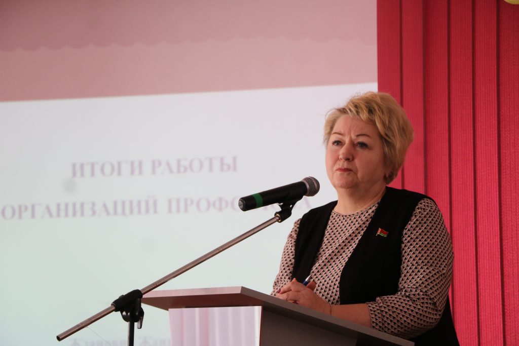 Основной доклад представила председатель Октябрьской районной организации Белорусского профсоюза работников образования и науки Татьяна Сыч, которая отметила важность работы организации в целом и каждого в отдельности, поблагодарила всех за труд и выразила надежду, что те задачи, которые поставлены перед районной организацией, будут выполнены.