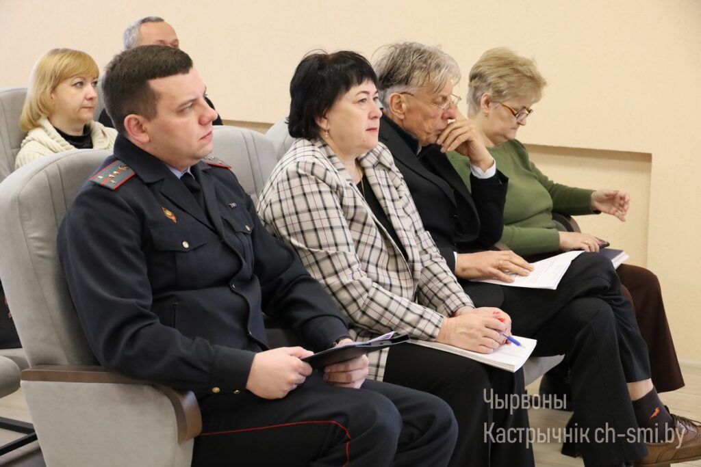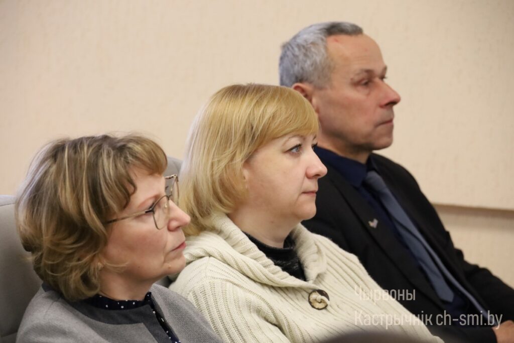 Начальник отдела идеологической работы и по делам молодежи Октябрьского райисполкома Карина Курсевич, говоря о Всебелорусском народном собрании, начала с исторических предпосылок формирования этого представительного органа, упомянув еще древнерусское народное вече и более подробно остановившись на новой и новейшей белорусской истории. Также она рассказала о полномочиях, которыми теперь наделено Всебелорусское народное собрание в соответствии со своим новым статусом, и затронула повестку дня предстоящего всенародного форума. «Всебелорусское народное собрание стало символом народного единства», — дополнила председатель райисполкома Ирина Намоченко, напомнив, что благодаря неизменности курса, по которому движется страна, у нас есть все наши современные достижения: стабильная обстановка, сильная армия, продовольственная безопасность, сохранившаяся и развивающаяся промышленность.