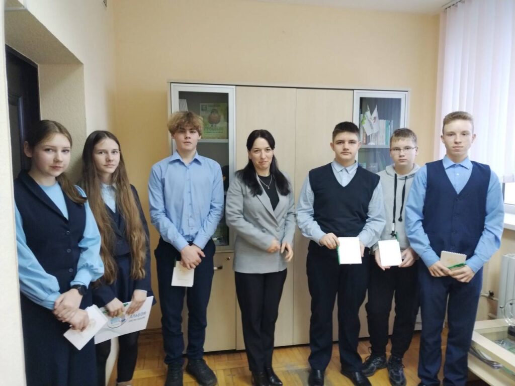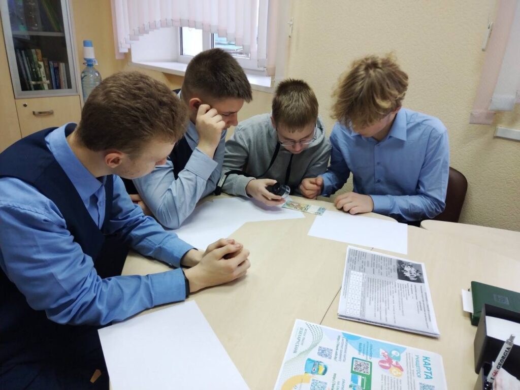 Директор ЦБУ №319 Кукунова Наталья Андреевна провела беседу о денежных знаках. Ребята узнали о защитных элементах, размещенных на бумажных купюрах, белорусских монетах и что изображено на них. Смогли увидеть памятную банкноту, выпущенную к 80-летию Победы советского народа в Великой Отечественной войне. В завершении встречи ребята прошли тест «Кибер герой» и проверили свои знания по финансовой грамотности.