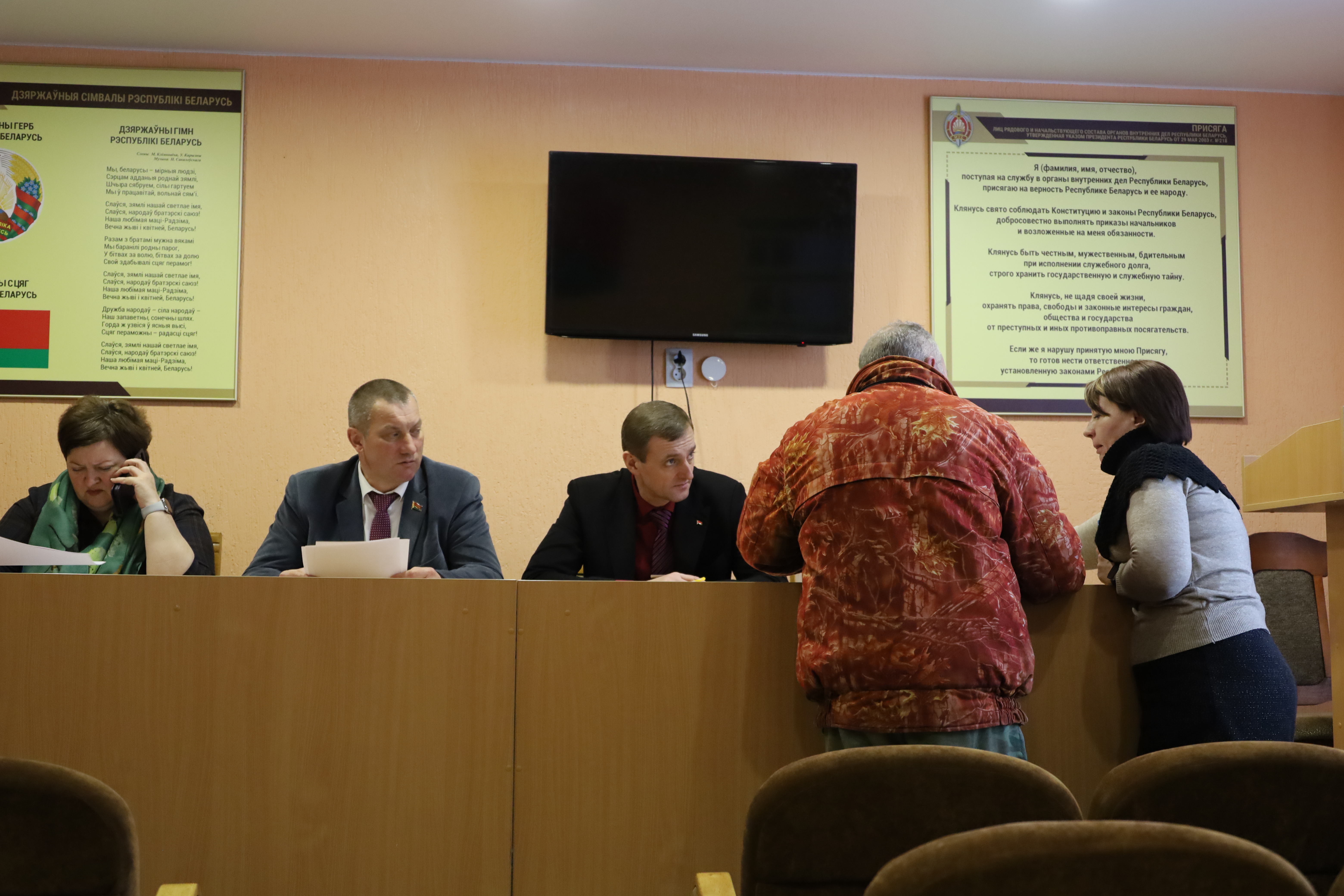 Выездное заседание постоянно действующей комиссии Октябрьского районного исполнительного комитета по координации работы по содействию занятости населения под руководством председателя районного Совета депутатов Александра Луцковича прошло на текущей неделе в РОВД. На него были приглашены граждане, которые состоят на учете в уголовно-исполнительной инспекции отдела внутренних дел и находятся в базе данных не занятых в экономике. Этой категории граждан, которые однажды оступились, но стали на путь исправления, нужна особая поддержка, в том числе и найти работу. Помочь им – задача всех заинтересованных служб. И члены комиссии помогают. Предлагают вакансии, которые соответствуют образовательному уровню гражданина, дают разъяснения о самозанятости, о видах деятельности, которые можно осуществлять без регистрации ИП, просто уплатив единый налог. Кто желает трудоустроится, тому оказывается полное содействие.
