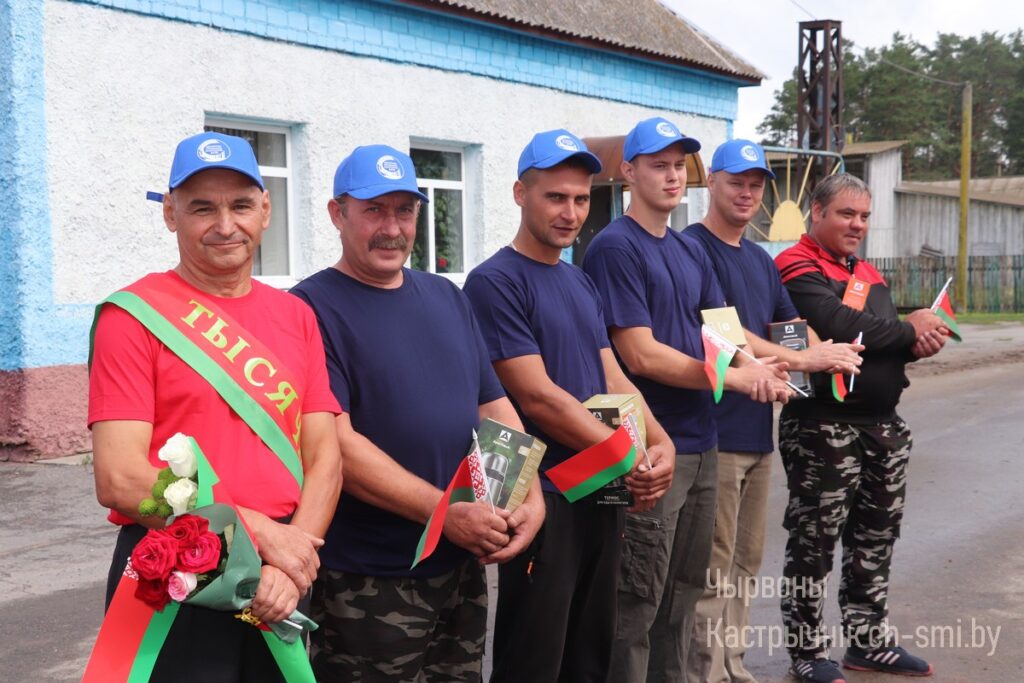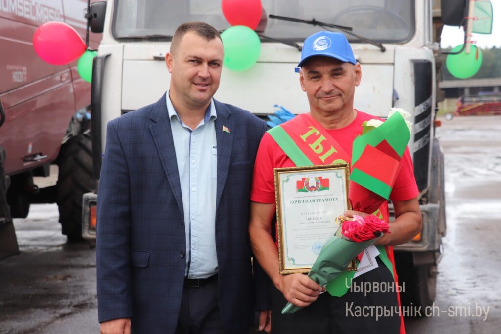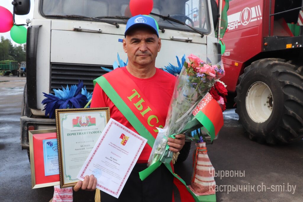 Анатолия Адамовича на мехдворе его родной сельхозорганизации чествовали председатель Октябрьского районного исполнительного комитета Ирина Намоченко, заместитель председателя Октябрьского районного Совета депутатов Василий Лаханский, руководитель районной профсоюзной организации работников АПК Ева Дервоед, исполняющий обязанности директора ОАО «Некрашинский» Владислав Драпеза, другие руководящие работники, коллеги первого на Октябрьщине тысячника. Почетные грамоты, цветы и подарки заслуженно адресовались передовику сельхозпроизводства, настоящему хлеборобу Анатолию Белько с самыми искренними пожеланиями ему, а также комбайнерам и другим труженикам хозяйства, внесшим достойный вклад в общий каравай, здоровья, добра и благополучия и, конечно же, новых успехов и достижений на хлебной ниве.