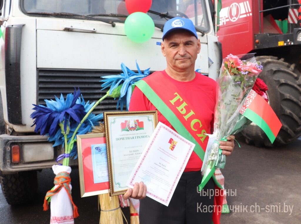 Сегодня многочисленные поздравления принимал водитель автомобиля МАЗ-555102открытого акционерного общества «Некрашинский» Анатолий Белько по случаюдостигнутой им трудовой победы – он накануне стал первым в районехлеборобом-тысячником на текущей жатве, точнее, перевез от комбайнов назерноток хозяйства 1000 тонн зерна нового урожая.