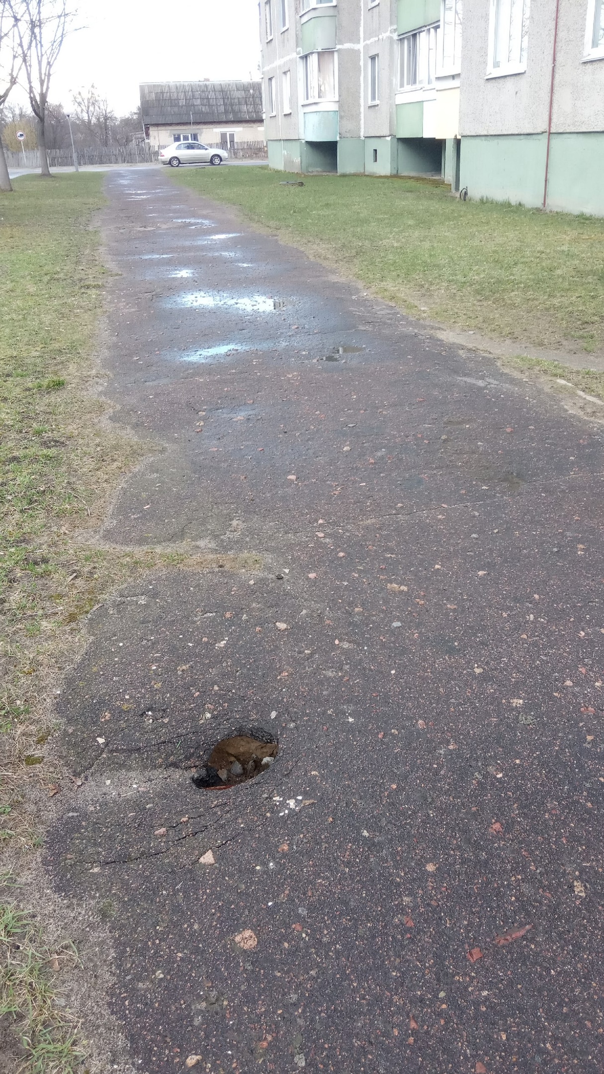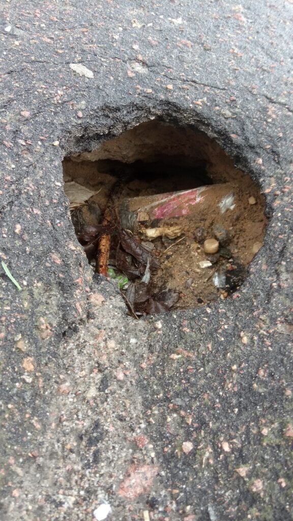 Вот такая со стороны, вроде, и неприметная дыра образовалась на пешеходной дорожке за домом №82, что по улице Урицкого. Издалека она не особо заметна, но при ближайшем рассмотрении видно, что эта безобидная ямка не такая и маленькая, и случайно зацепиться или провалиться туда ногой может каждый, особенно в темное время суток. К тому же со временем она превратилась в «урну для мусора». Чего здесь только нет: бумажки, пробки, ветки…
