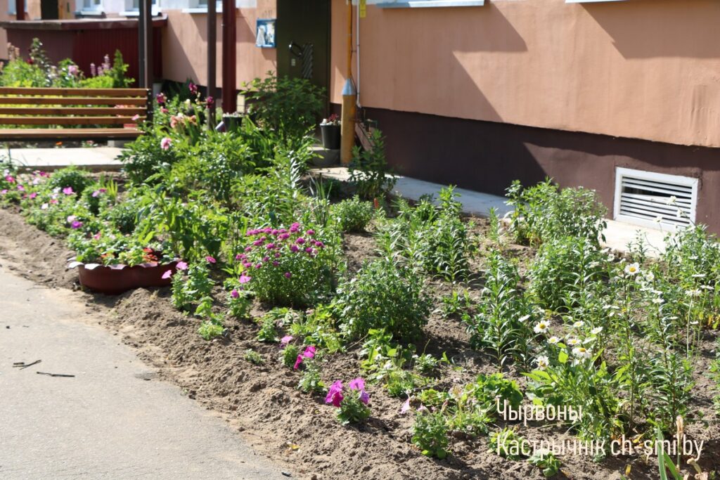 Фотофакт. Продолжается благоустройство придомовой территории многоквартирного жилого сектора г. п. Октябрьский, активное участие в котором принимают жильцы. Так, возле дома №12 микрорайона первого появились не только красивые яркие клумбы, но и новые архитектурные формы