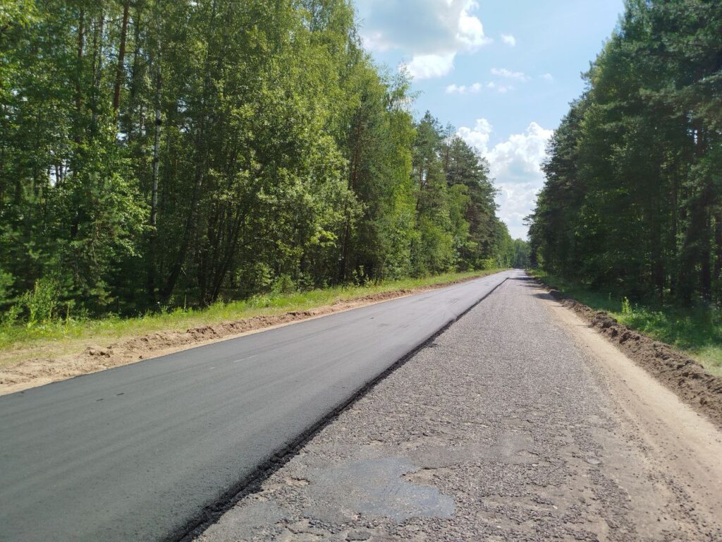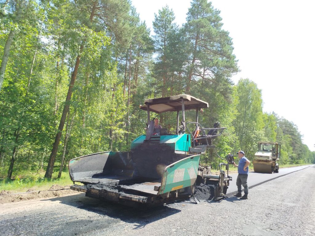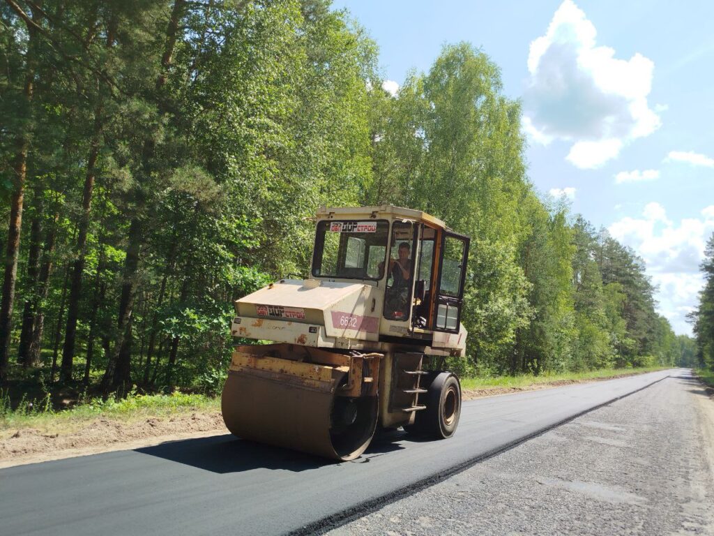 ФОТОФАКТ. Идет асфальтирование участка дороги от автотрассы Р-82 по направлению к населенному пункту Залесье Новости Октябрьщины 16 Июл 2025 760 В настоящий момент здесь работает техника Октябрьского участка Светлогорского ДРСУ-207 — асфальтоукладчик, каток, автогудронатор, самосвалы МАЗ для подвоза асфальтобетонной сети