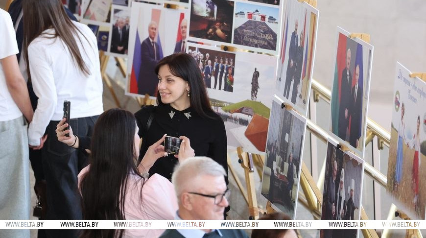 Фотовыставка БЕЛТА «Две страны — одно государство Союзное» ко Дню единения народов Беларуси и России работает во Дворце Республики в Минске, передает корреспондент БЕЛТА.