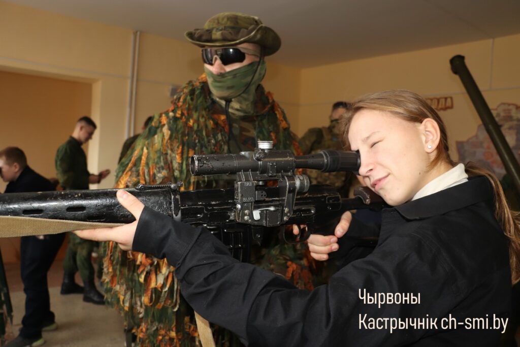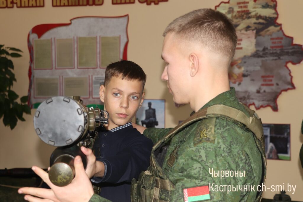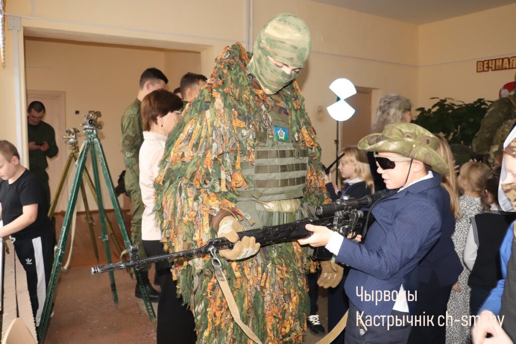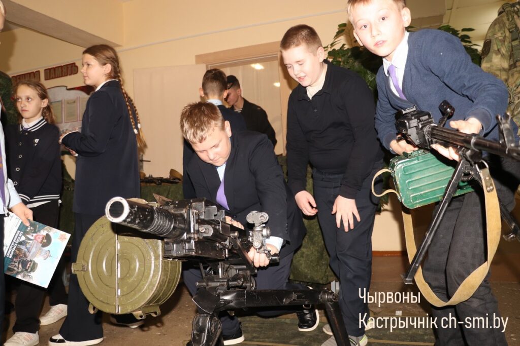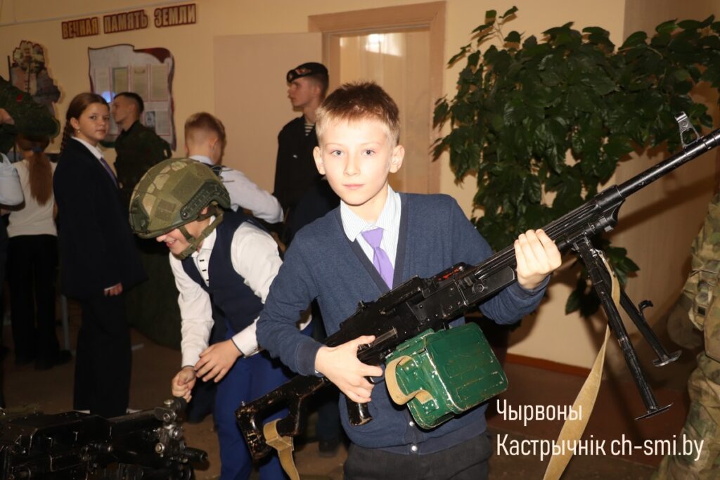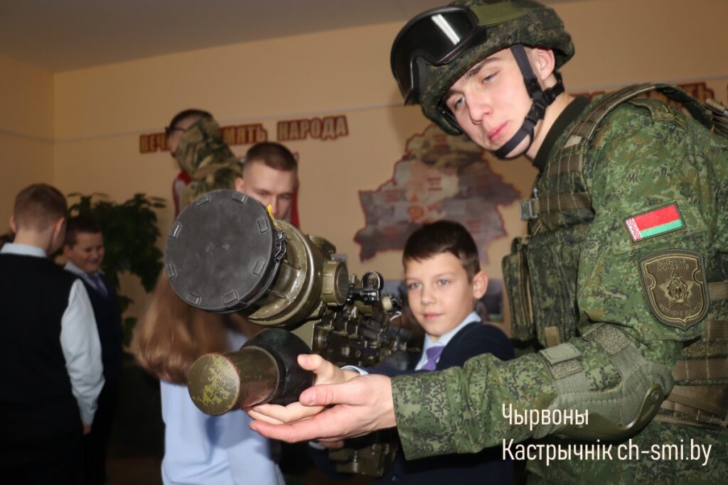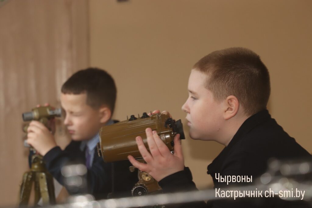 С приветствием к ребятам обратился начальник обособленной группы (Октябрьского района) военного комиссариата Светлогорского и Октябрьского районов Артем Булавко, который, в рамках взаимодействия с военными вузами, выступил организатором встречи. Артем Константинович подчеркнул, что профориентационные встречи организовываются с целью повышения мотивации учащихся. Он обратил внимание, что профориентация – вопрос для многих школьников и их родителей непростой. Думать о своем будущем нужно начинать заранее. У школьников разные представления о своей будущей профессии, поэтому во время таких встреч, приглашенные гости нацелены на то, чтобы подготовить старшеклассников и предоставить им полный объем информации о той или иной специальности. Так, об особенностях профессии офицера рассказал начальник кафедры автоматизированных систем управления войсками факультета связи и АСУ, полковник Дмитрий Шарак. Он приехал в районную гимназию с курсантами, представителями всех факультетов Военной академии, которые организовали для гимназистов не только военно-патриотическое занятие, но и продемонстрировали для всех желающих учеников образцы вооружения и техники, которые изучают будущие военнослужащие. Перед беседой ребята смогли примерить военную форму, ознакомились с устройством и принципом работы оружия, пообщались с курсантами.