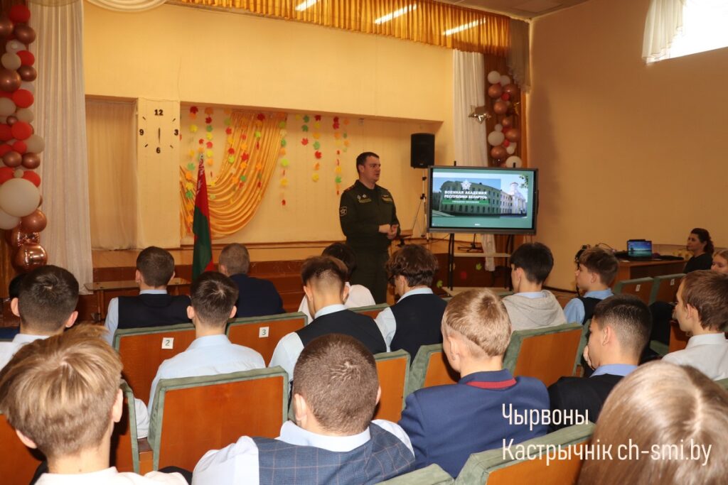 В четверг в рамках взаимодействия с вузами и сузами, а также профориентационной работы, в районной гимназии прошла встреча старшеклассников с представителями Военной академии Республики Беларусь. Также были приглашены на мероприятие учащиеся Октябрьского государственного колледжа.