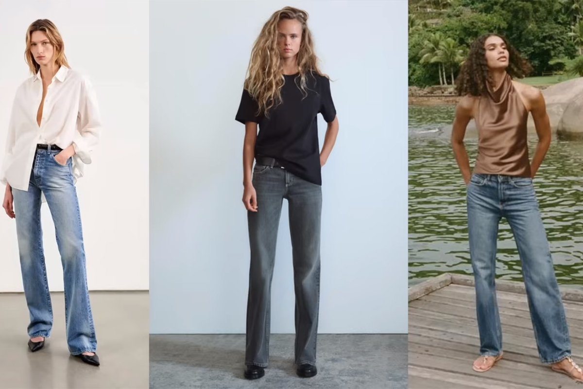 Сейчас он тонкий и дозированный. Такой клеш начинается не от бедра, а чуть ниже колена и просто добавляет красивую линию, особенно в движении. Это идеальный вариант для тех, кто не любит прямые джинсы, но хочет визуально вытянуть силуэт. Подобные фасоны часто появляются у Chloé и Saint Laurent. Они умеют сделать клеш даже строгим, если нужно. Лучше всего сочетать такие джинсы с обувью на каблуке или заостренным мыском — балетками, мюлями или босоножками. Верх может быть объемным, например рубашка или структурированный топ. Получается гармоничный образ, особенно если подчеркнуть талию.
