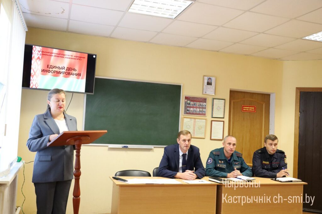 Информационно-пропагандистская группа под руководством заместителя председателя Октябрьского райисполкома Александра Шульца встретилась с коллективом Октябрьского РОЧС. На встрече поговорили о судьбоносной для Беларуси дате – 17 сентября 1939 г. также затронули тему кибербезопасности