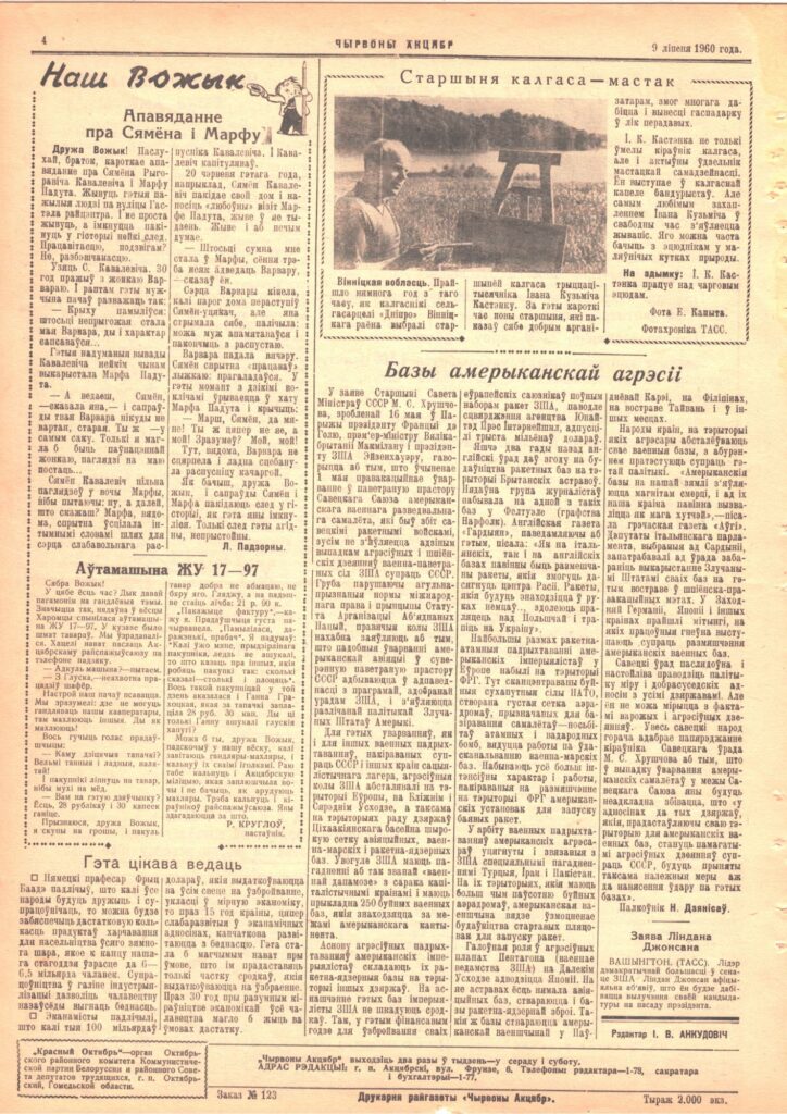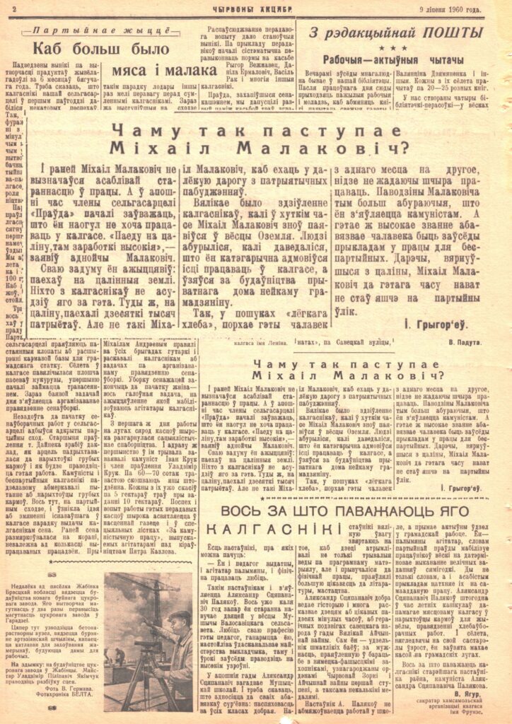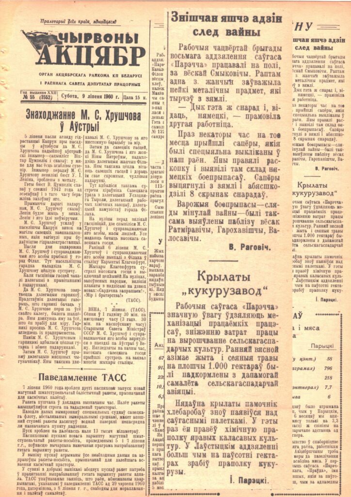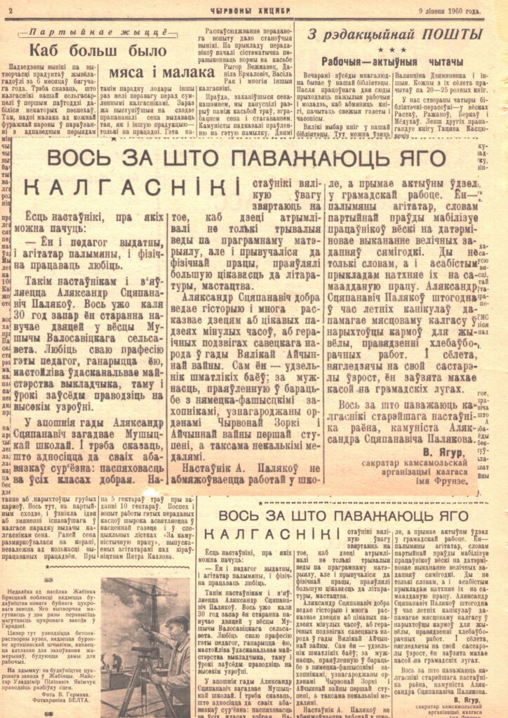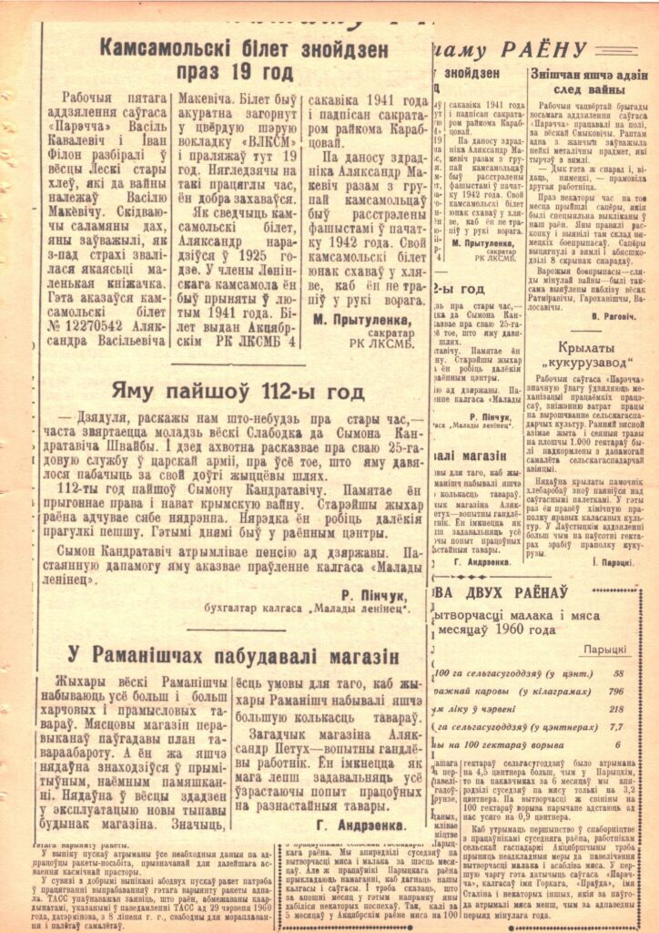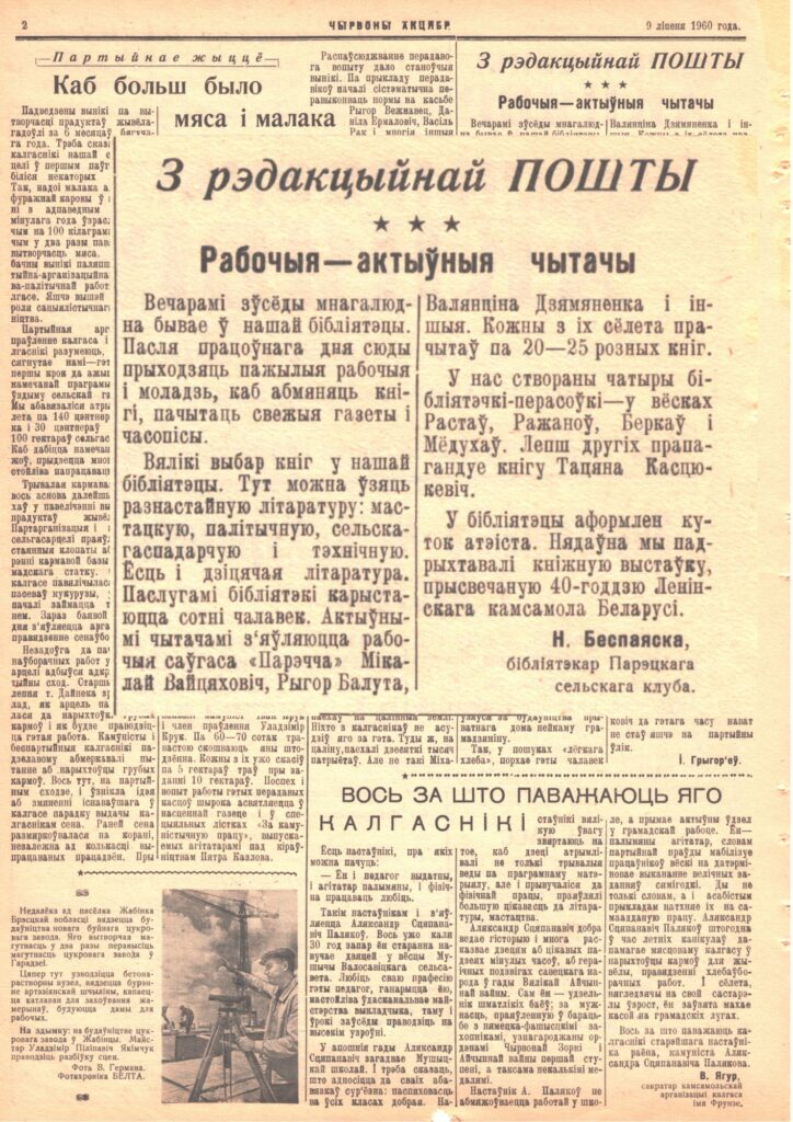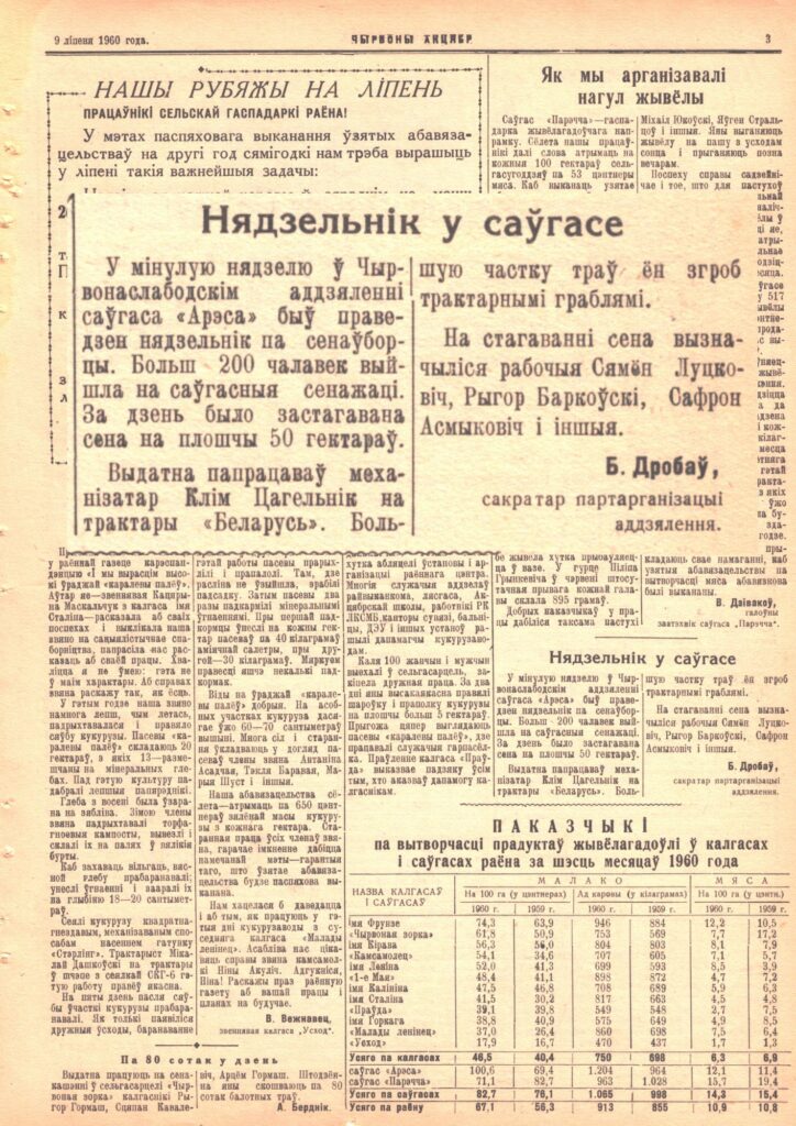 Интернет-проект «Новая жизнь старых газет» редакции газеты «Чырвоны Кастрычнік». Что писали о районе в выпуске от 9 июля 1960 г. Общество 09 Июл 2025 1370