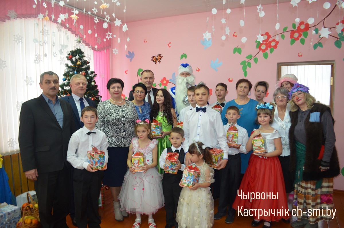 К ребятам приехали в гости с почетной миссией заместитель председателя Октябрьского райисполкома Виктор Киселев, депутат Гомельского областного Совета депутатов Инна Фастовец, начальник отдела образования, спорта и туризма райисполкома Марина Балынская, председатель Ломовичского сельисполкома Михаил Камзолов и директор ОАО «Ломовичи» Сергей Бобренок. Для них руководство и коллектив учреждения, мальчики и девочки, воспитывающиеся в приюте, подготовили замечательное новогоднее представление с участием Деда Мороза, Снегурочки и особенно понравившейся гостям и детворе Бабы Яги, с чтением стихов, исполнением песен и танцев, хороводами, что заслуживало искренних аплодисментов и самой высокой оценки. В концертно-развлекательную программу органично включилось и награждение ребят подарками, которые привезли почетные гости.