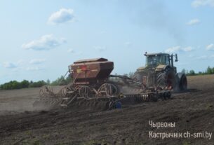 А в прошедший вторник в ОАО «Некрашинский» начали заниматься непосредственно сенажом. В 800-тонную траншею на территории МТФ «Мушичи» к вечеру четверга было заложено уже больше половины объема хранилища – 480 тонн. Травяная масса, чередованная для плотности слоями прошлогоднего сена, трамбуется при помощи погрузчика «Амкодор» под управлением механизатора Сергея Гринева. Востребован при этом и ручной труд: равномерное распределение фуража в траншее регулируют полеводы Леонид Пинчук и Василий Петрусенко.