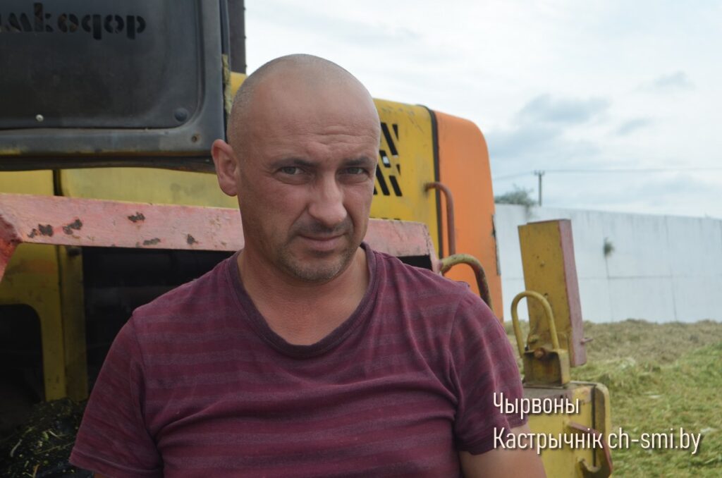 Ответственная и аккуратная работа – формирование траншеи и трамбовка измельченной кукурузной массы в ней поручена опытному механизатору ОАО «Октябрьский-Агро» Ивану Шеремету. Он трудится на погрузчике «Амкодор-332», причем на нескольких участках. Например, в прошедший четверг Иван Анатольевич с утра обеспечивал свежим фуражом поголовье МТФ «Подсобное», а после полудня, когда развернулись работы на кукурузном поле около Новых Завален, приступил к трамбовке будущего силоса на территории животноводческого объекта в Новой Дуброве. Веса машины в 10 с половиной тонн вполне хватает для плотного прикатывания зеленой массы, которую доставляли на ферму водитель Александр Михед на самосвале МАЗ-555 и механизатор Сергей Самусенко на тракторе МТЗ-892 с прицепом. Кукурузная масса нынче не переувлажнена, однако для лучшей консервации все равно требуется солома, которую равномерно распределяет по траншее ковшом погрузчика Иван Шеремет.