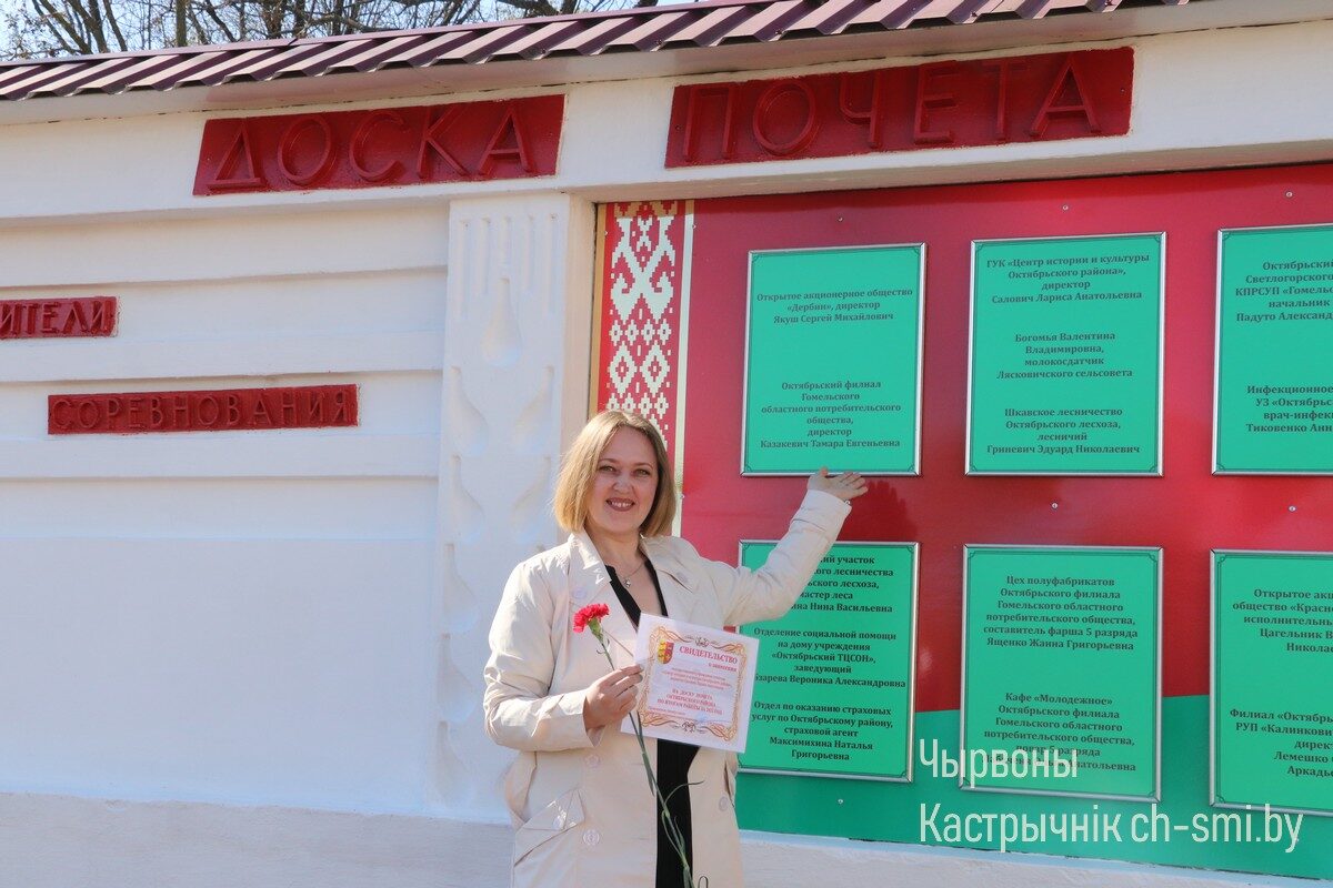 Торжественная церемония вручения свидетельств о занесении на районную Доску Почета лучших коллективов всех сфер деятельности Октябрьщины, их работников, заслуживающих самых высоких похвал, прошла прошла сегодня на Центральной площади городского поселка Октябрьский.Не случайно это мероприятие состоялось накануне Дня труда. Отметил это в своем выступлении и председатель Октябрьского райисполкома Сергей Довгалев. Сергей Николаевич подчеркнул, что на Центральной площади сегодня собрались люди труда, которые ценят и любят свою работу, прославляют добрыми делами свой край. — Мы собрались здесь, чтобы выразить признательность трудовым коллективам и передовикам производства, тем, кто вносит значительный вклад в развитие нашего региона. Быть лучшим – несомненно, признание и стимул для достижения еще более высоких результатов. Чем больше людей будет ровняться на вас, тем больше у Октябрьского района будет сил и возможности для дальнейшего уверенного движения вперед. Выражаю слова благодарности всем жителям, которые добросовестно трудятся, прославляя наш родной край. Низки поклон за труд, за стремление к лучшему, желаю крепкого здоровья, весеннего настроения, мира, добра и радости, — обратился к участникам мероприятия председатель райисполкома.